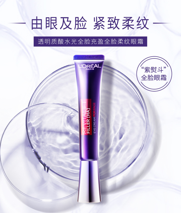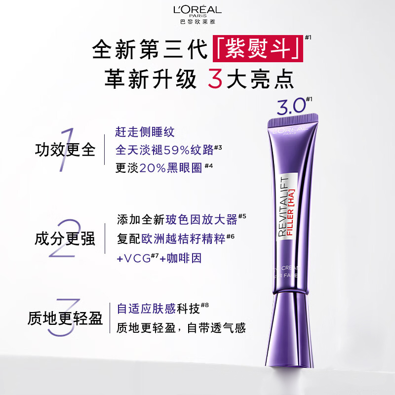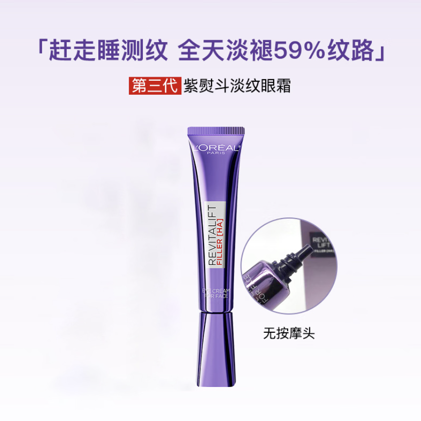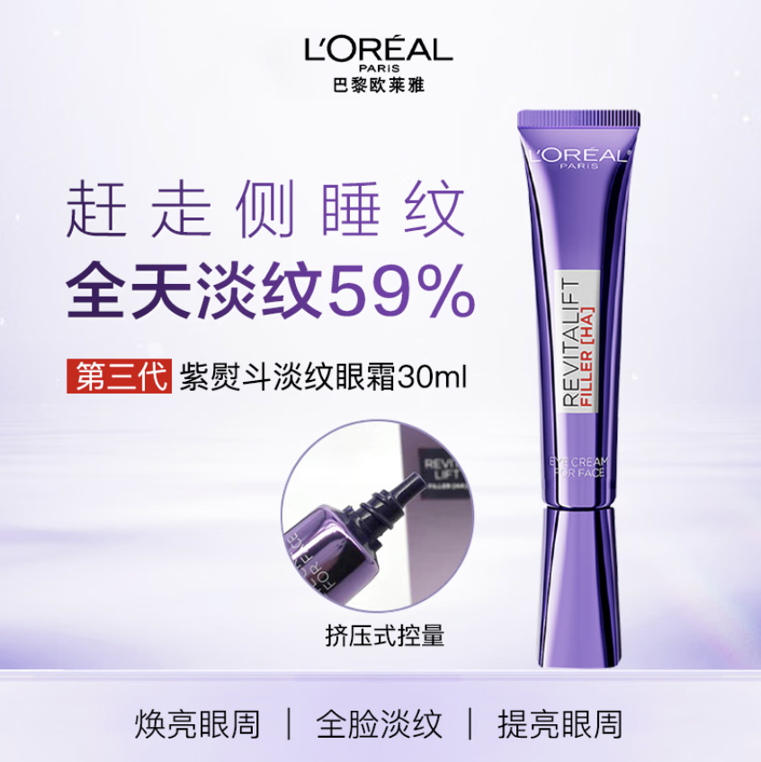【跨境】L'ORÉAL欧莱雅 紫熨斗眼霜 30ml 亚太版 无按摩头 玻色因全脸眼霜淡化细纹(效期到28年5月/三代随机发)