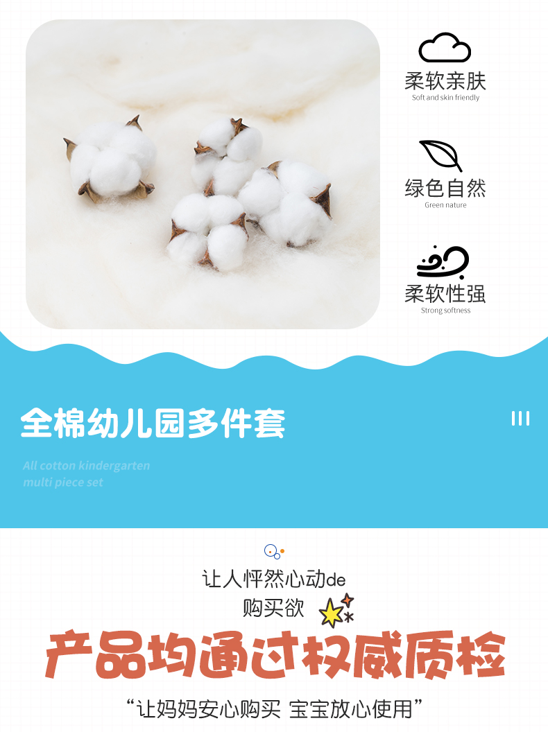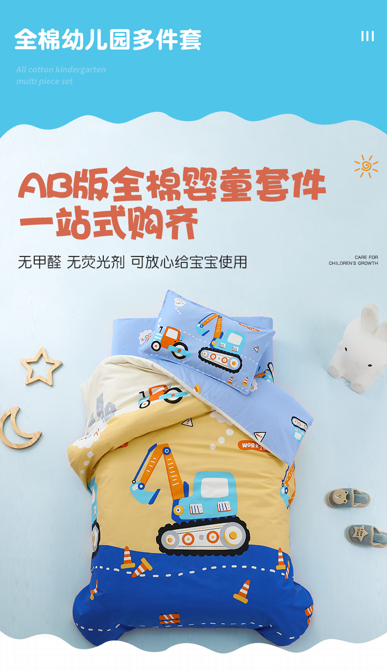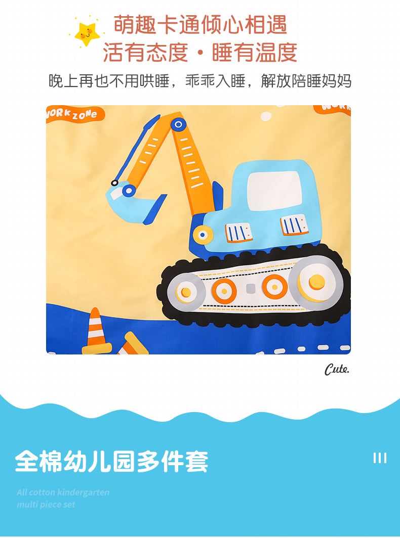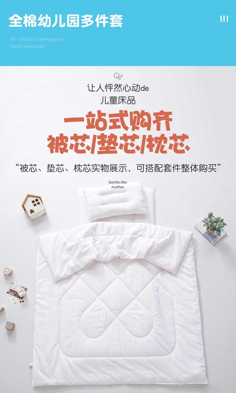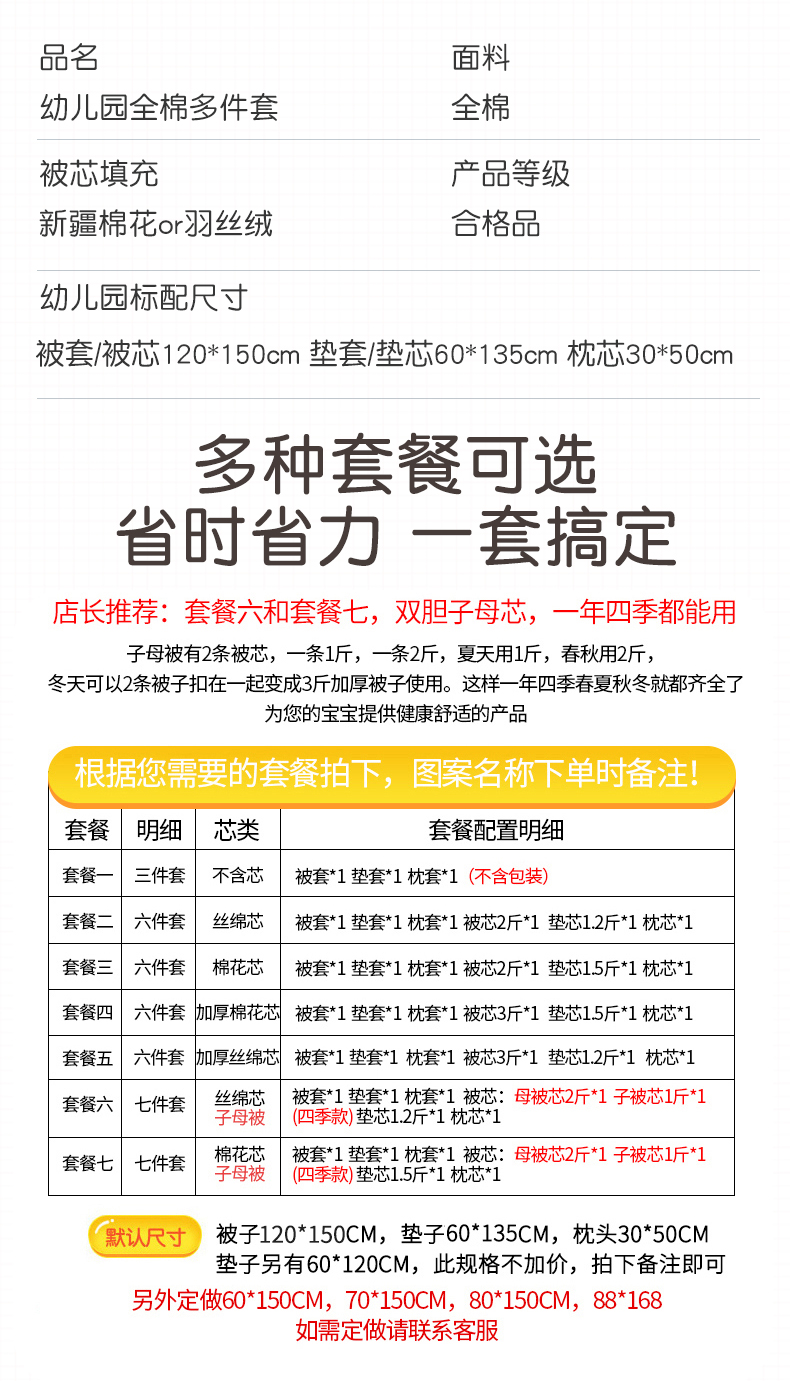 【幼儿园儿童全棉套件被子】全棉三件套、被子、垫子、三件套、六件套、七件套