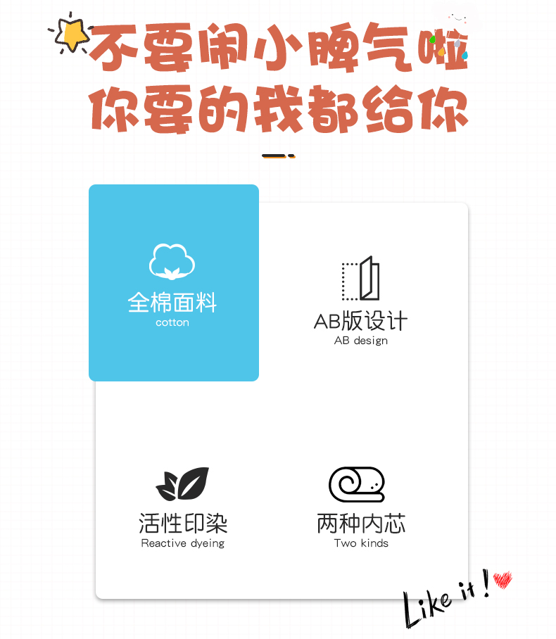 注:被芯填充选棉花,薄垫/枕头填充也是棉花