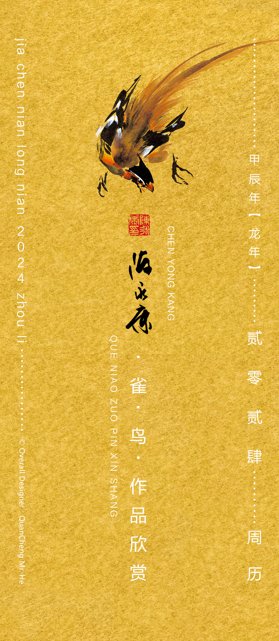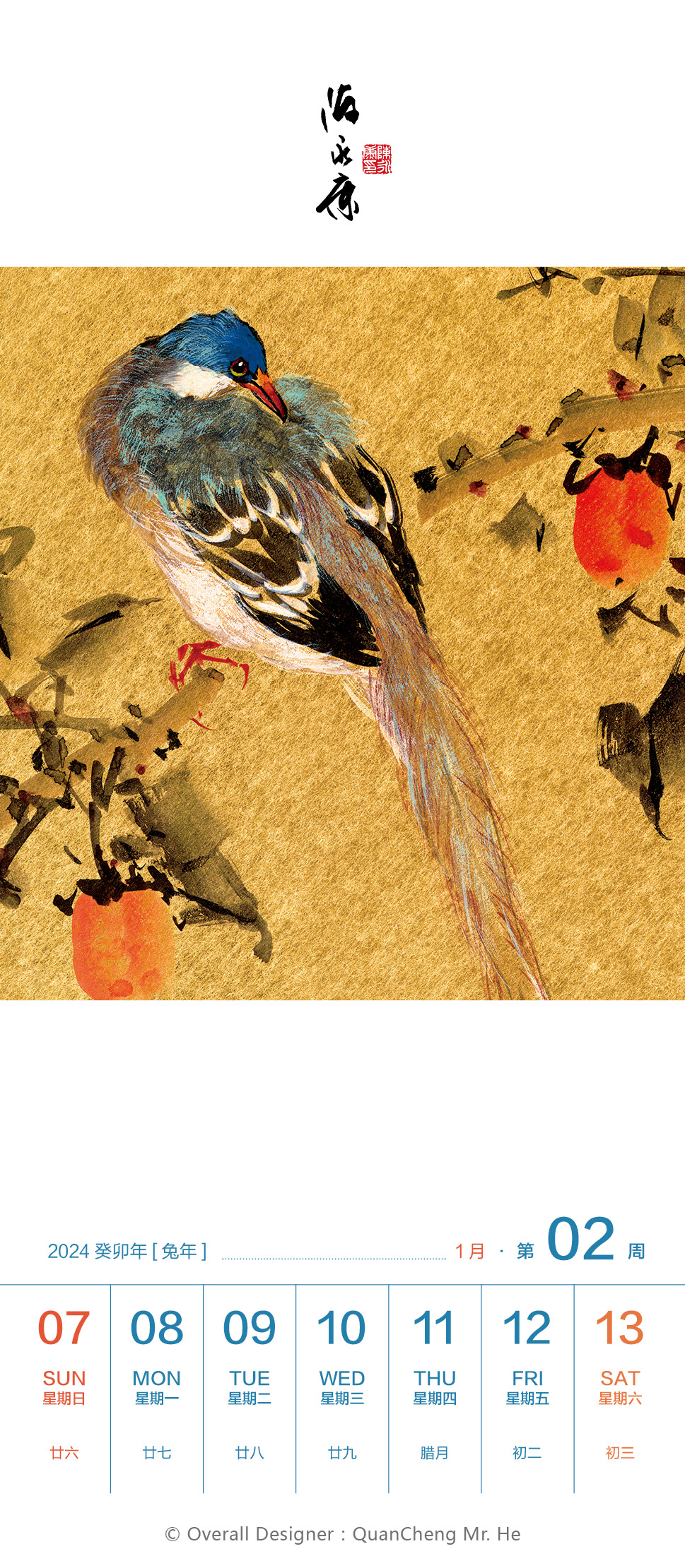 陈永康2024花鸟台历(周历)规格10*4*20CM60张精美印刷卡纸含作品画面+作者生平介绍+年历2张附送[送礼自用]