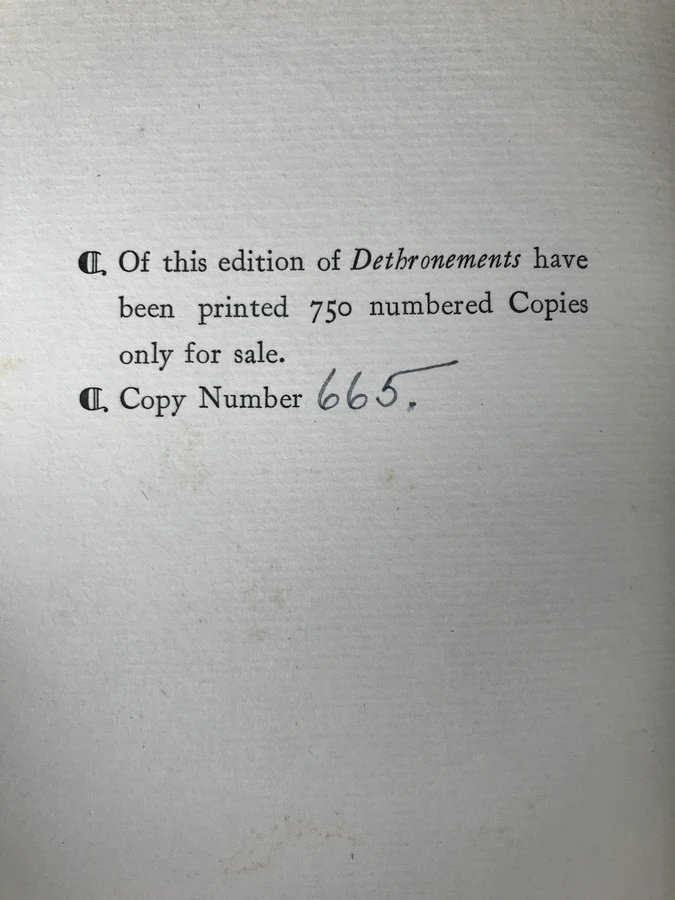 限量750册 1922年 劳伦斯·霍斯曼对话体政治小说《废黜》 漆布脊精装32开