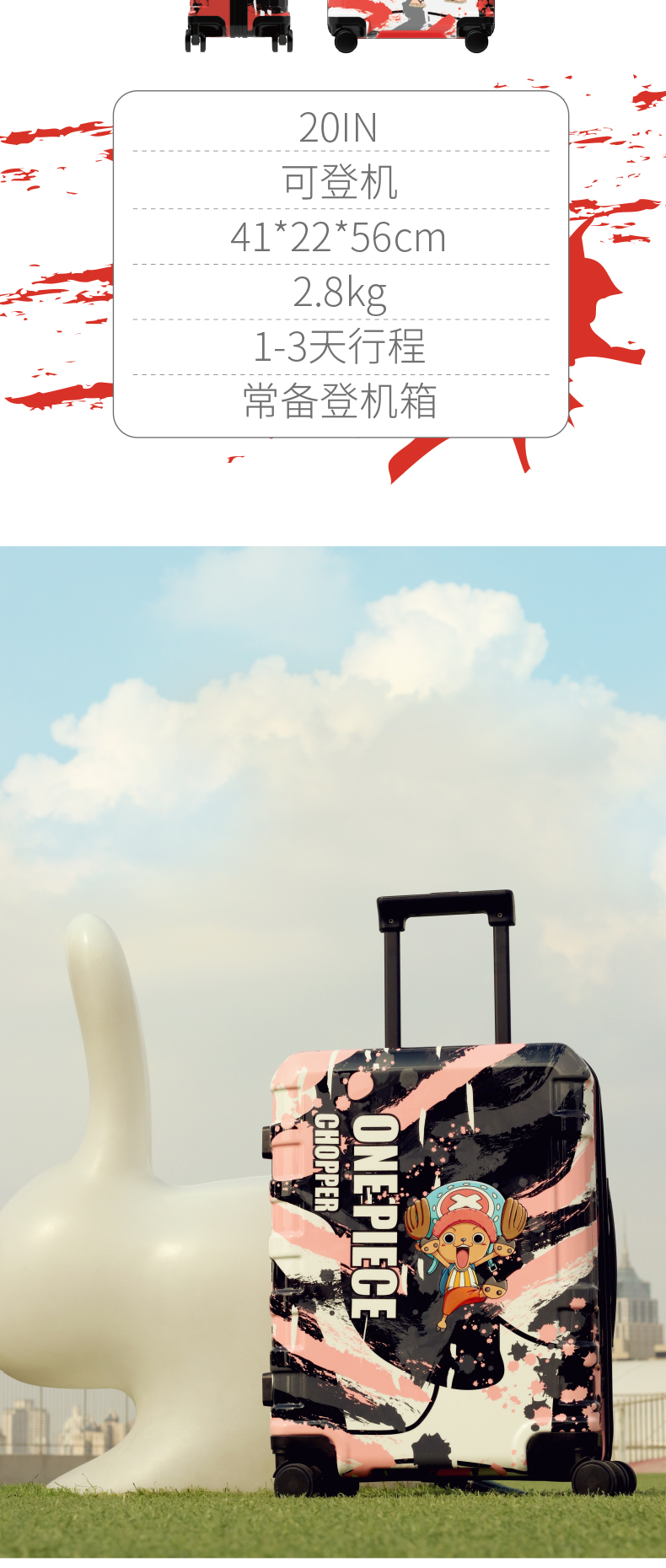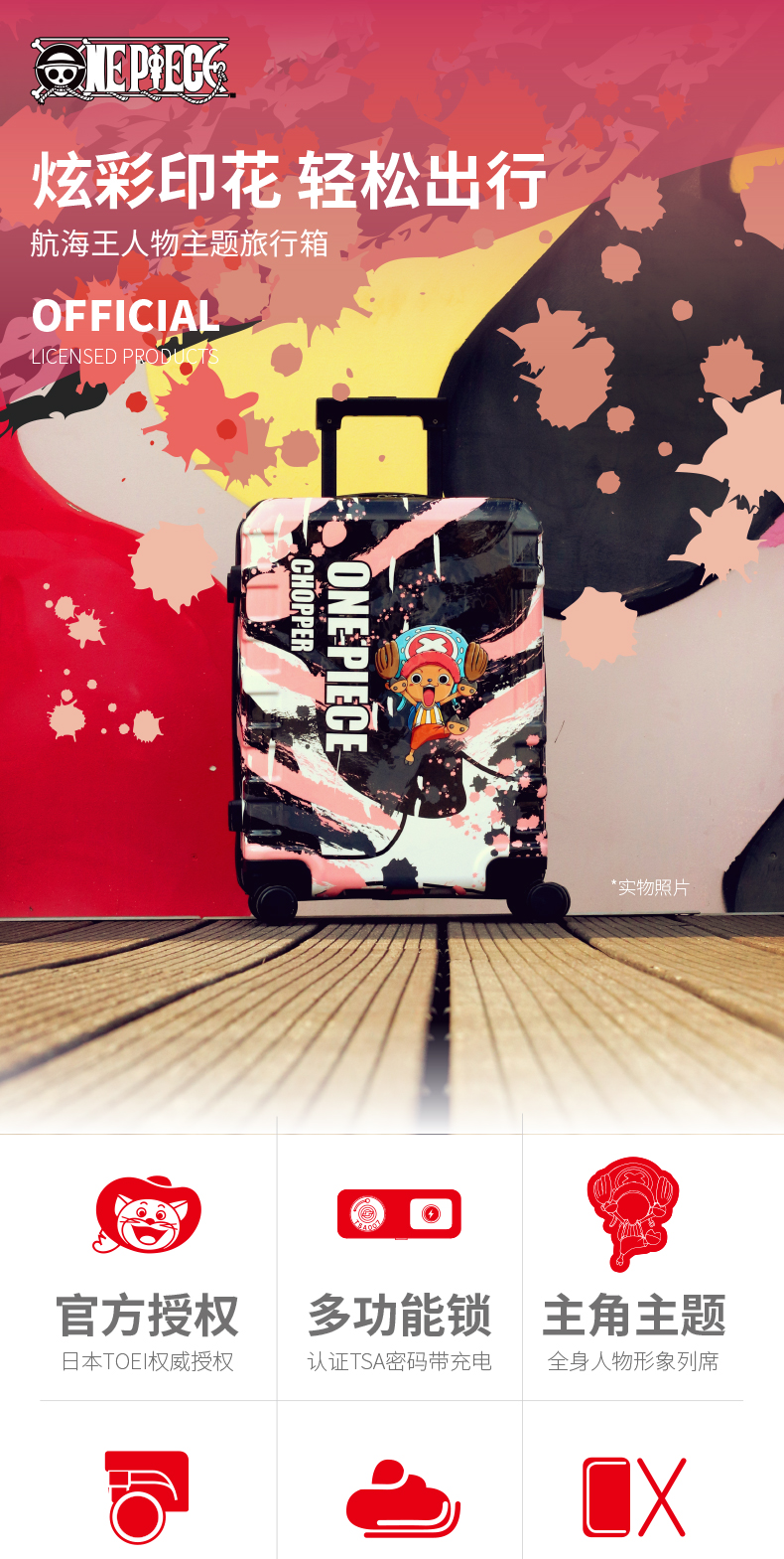 正版授权 航海王四色印花拉杆箱海贼王路飞 索隆航海王A-9827L