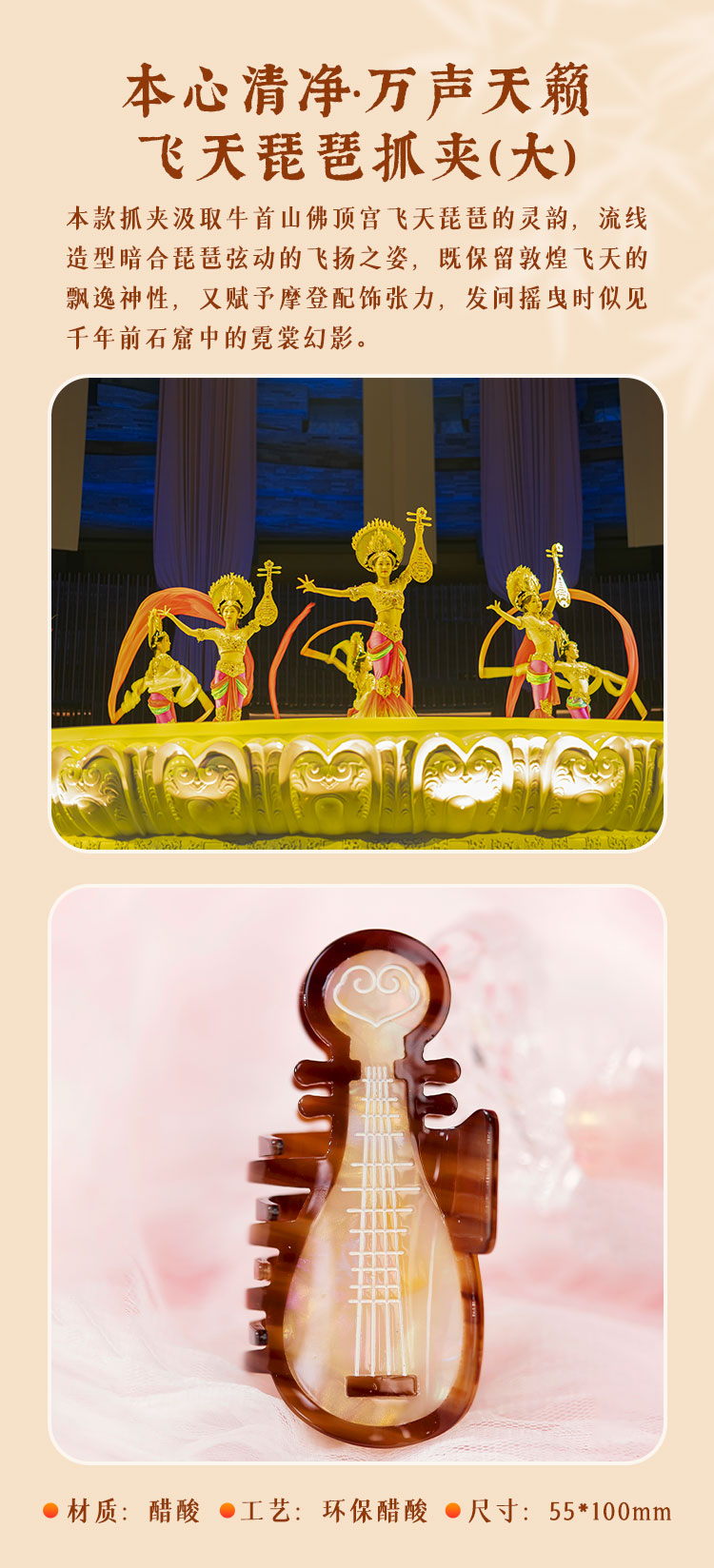 牛首山文创好事莲莲抓夹穹顶星空侧边夹古风发夹飞天琵琶抓夹发饰