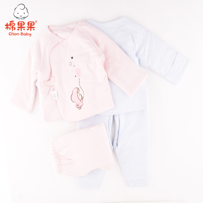 棉果果秋冬款男童女童内衣铺棉偏襟开裆套装M401301817636