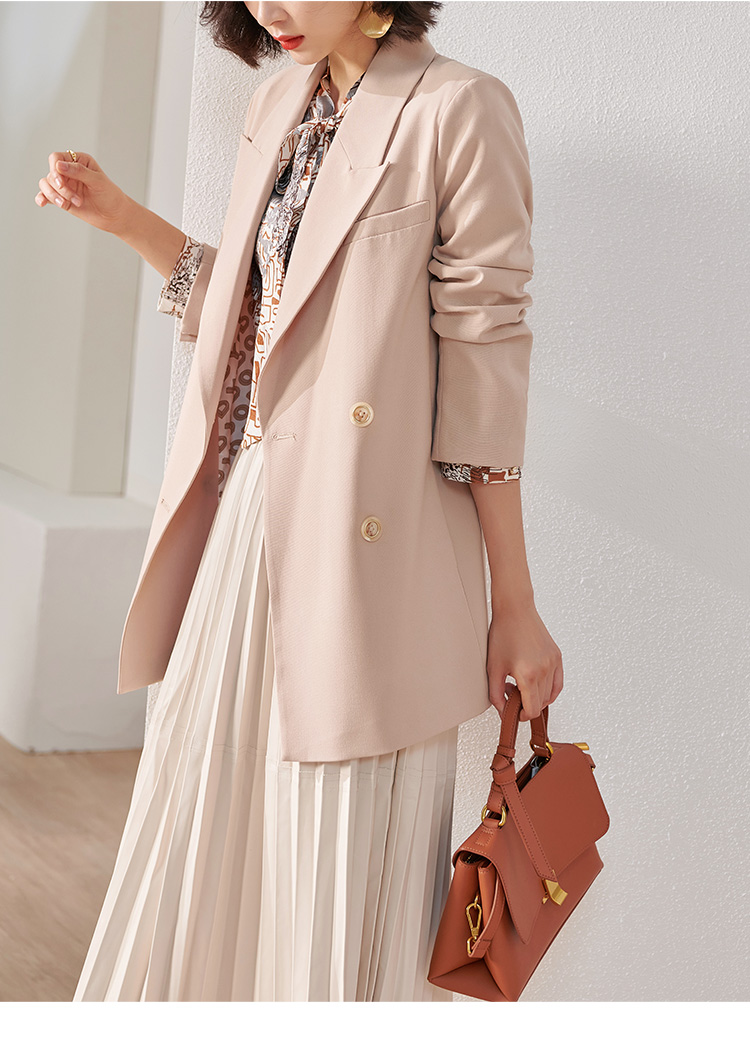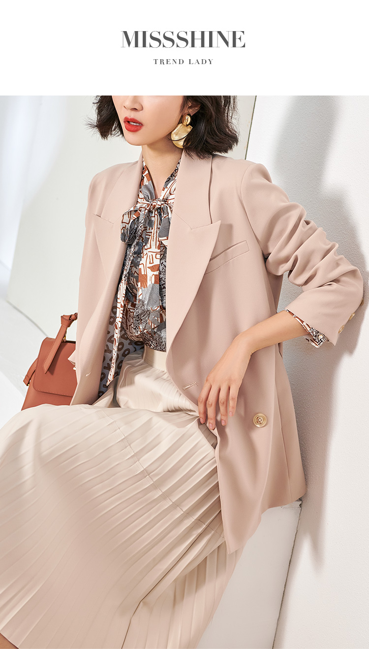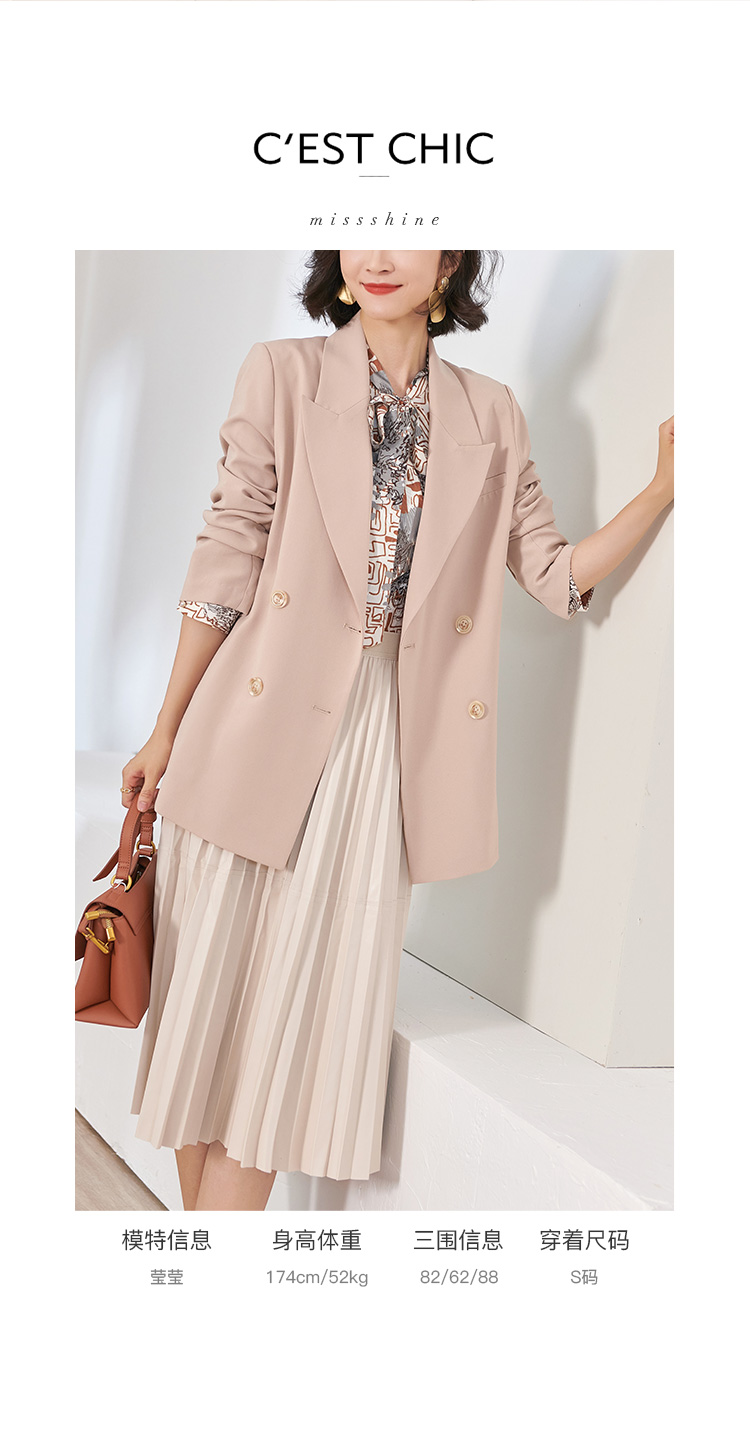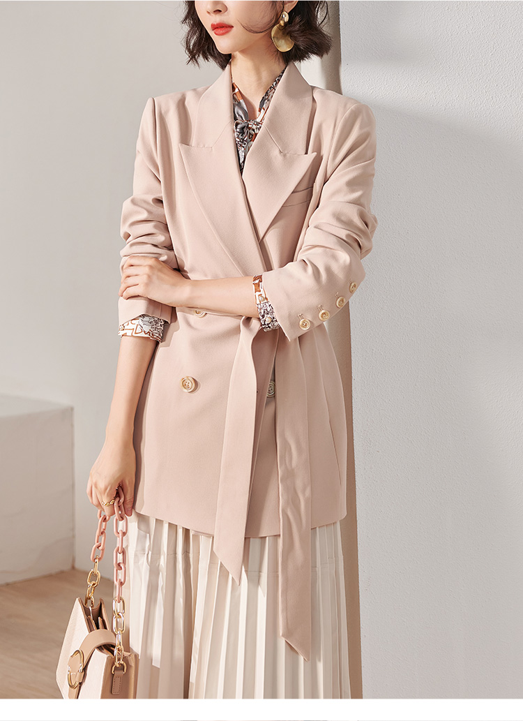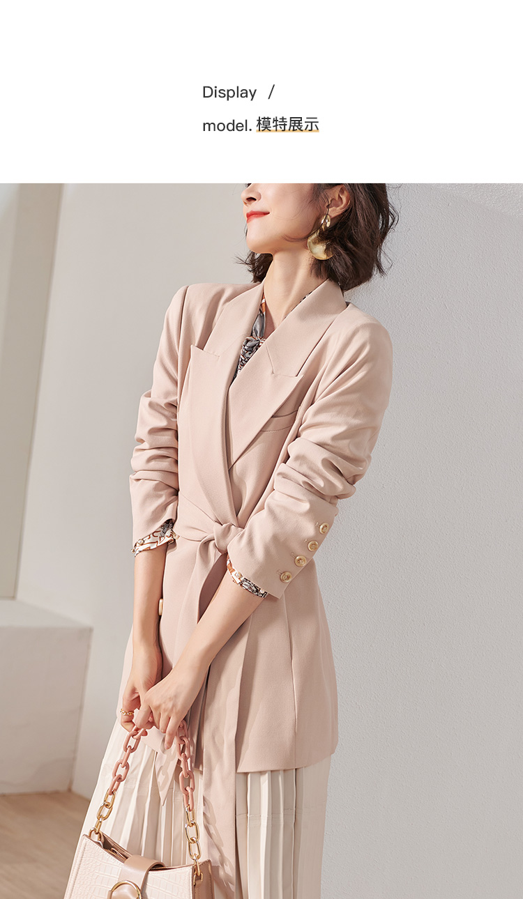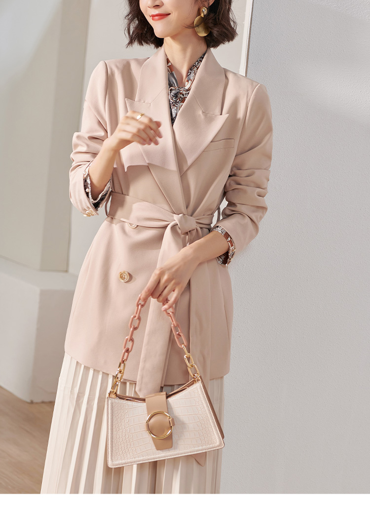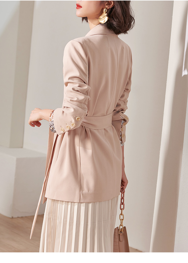 剩L/XL 米思阳2026春装新款知性优雅温柔卡其色系带收腰小西装外套女0174