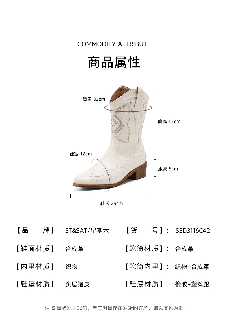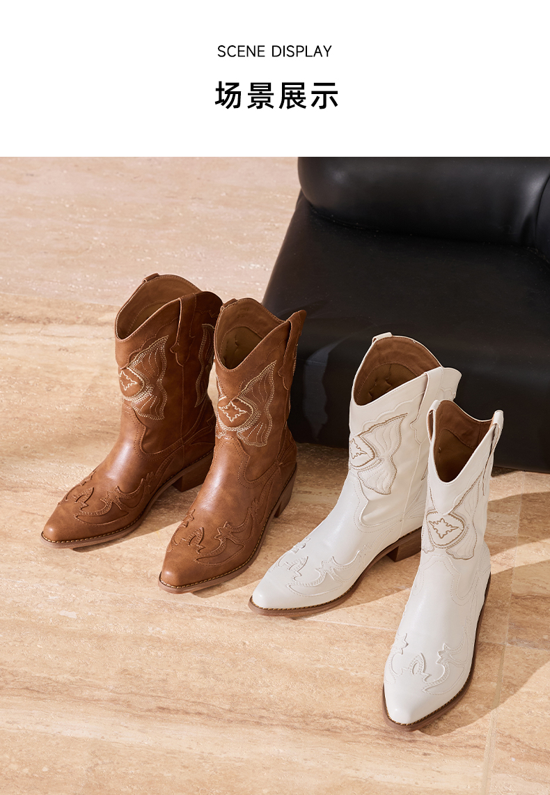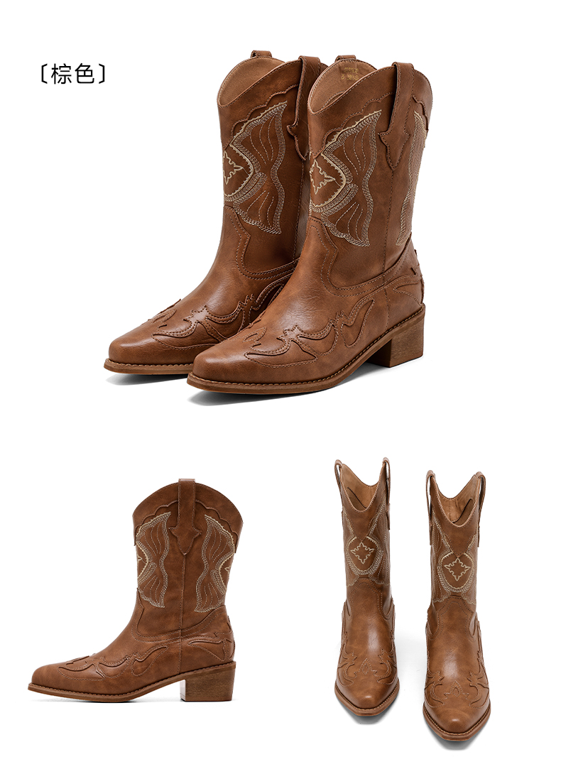 【精致刺绣】星期六美拉德西部牛仔靴SSD3116C42