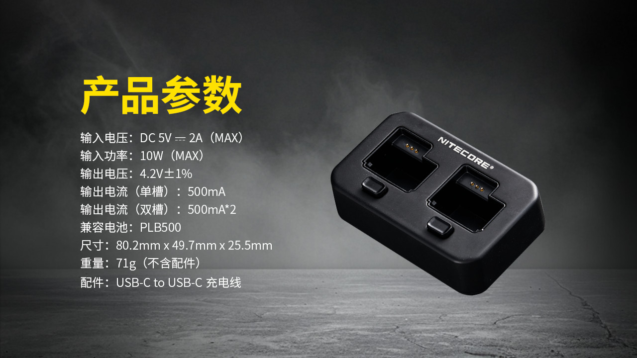 NITECORE奈特科尔PLC500下挂灯电池充电器 适配PLB500电池 NPL25 NPL25GL NPL27