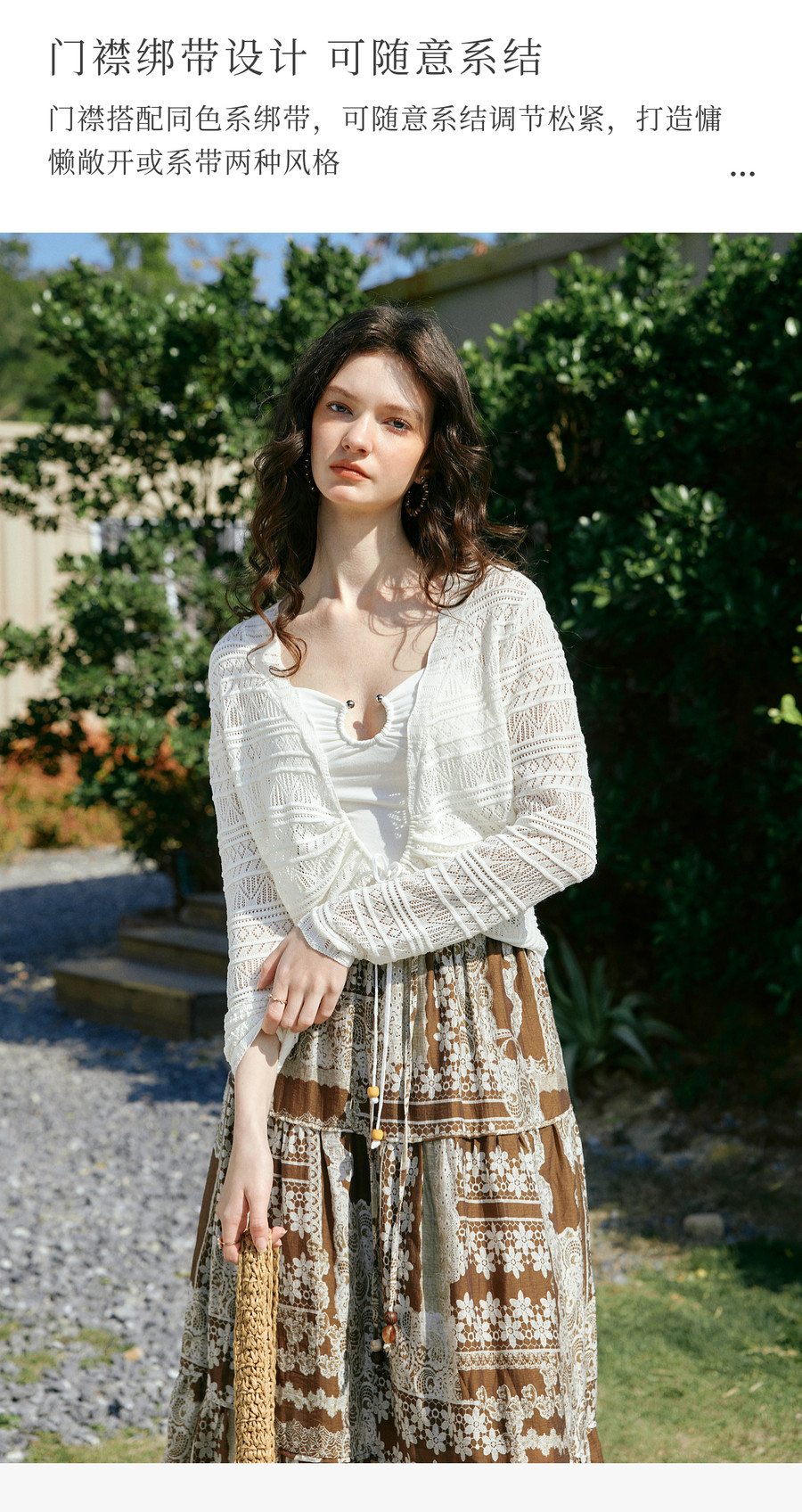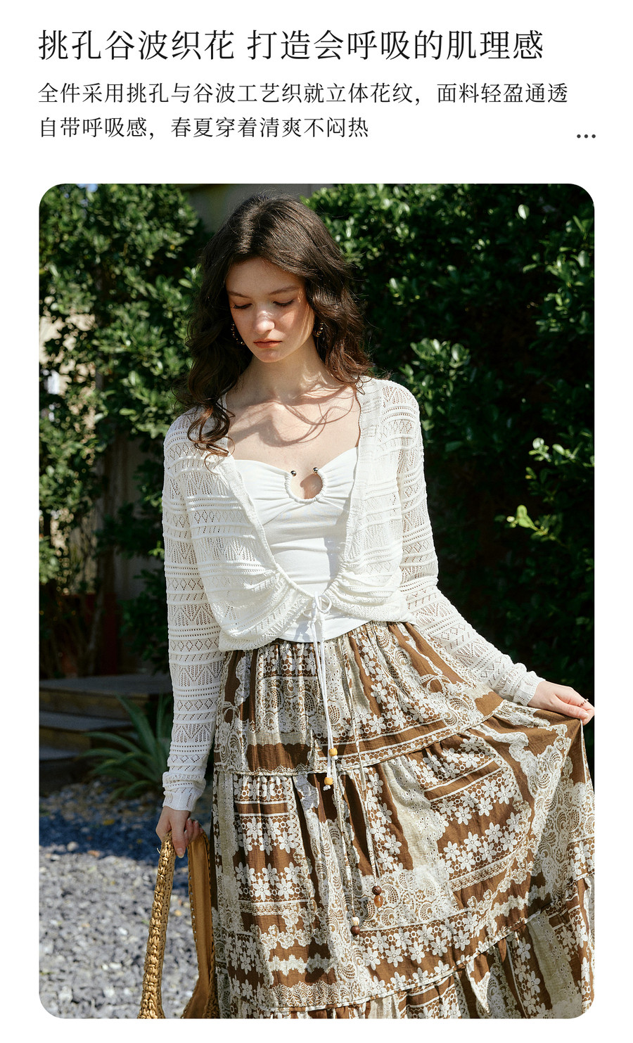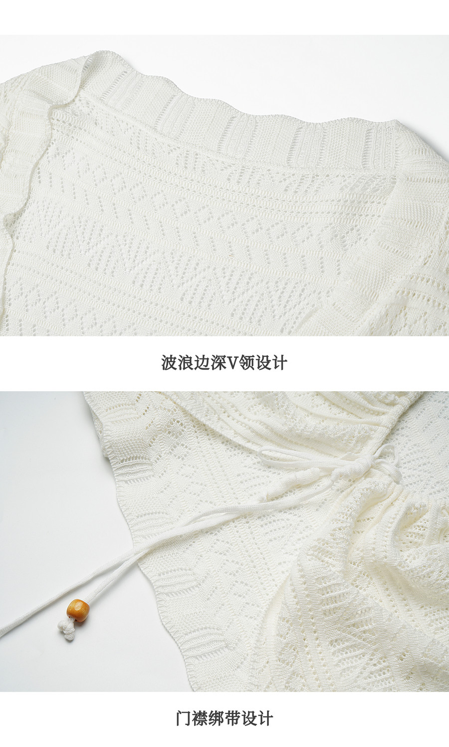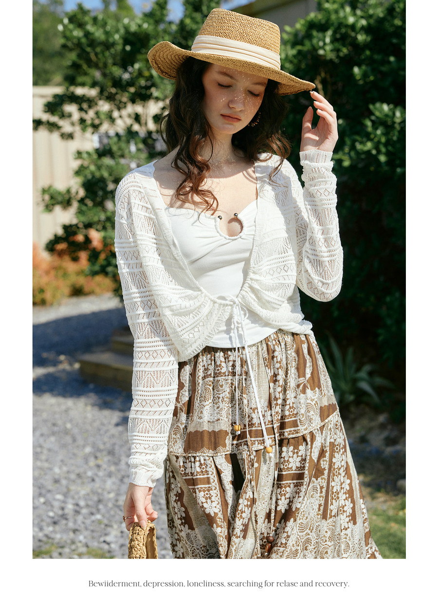 欧芮儿法式镂空挑孔V领毛针织开衫女夏季2026新款短款长袖上衣
