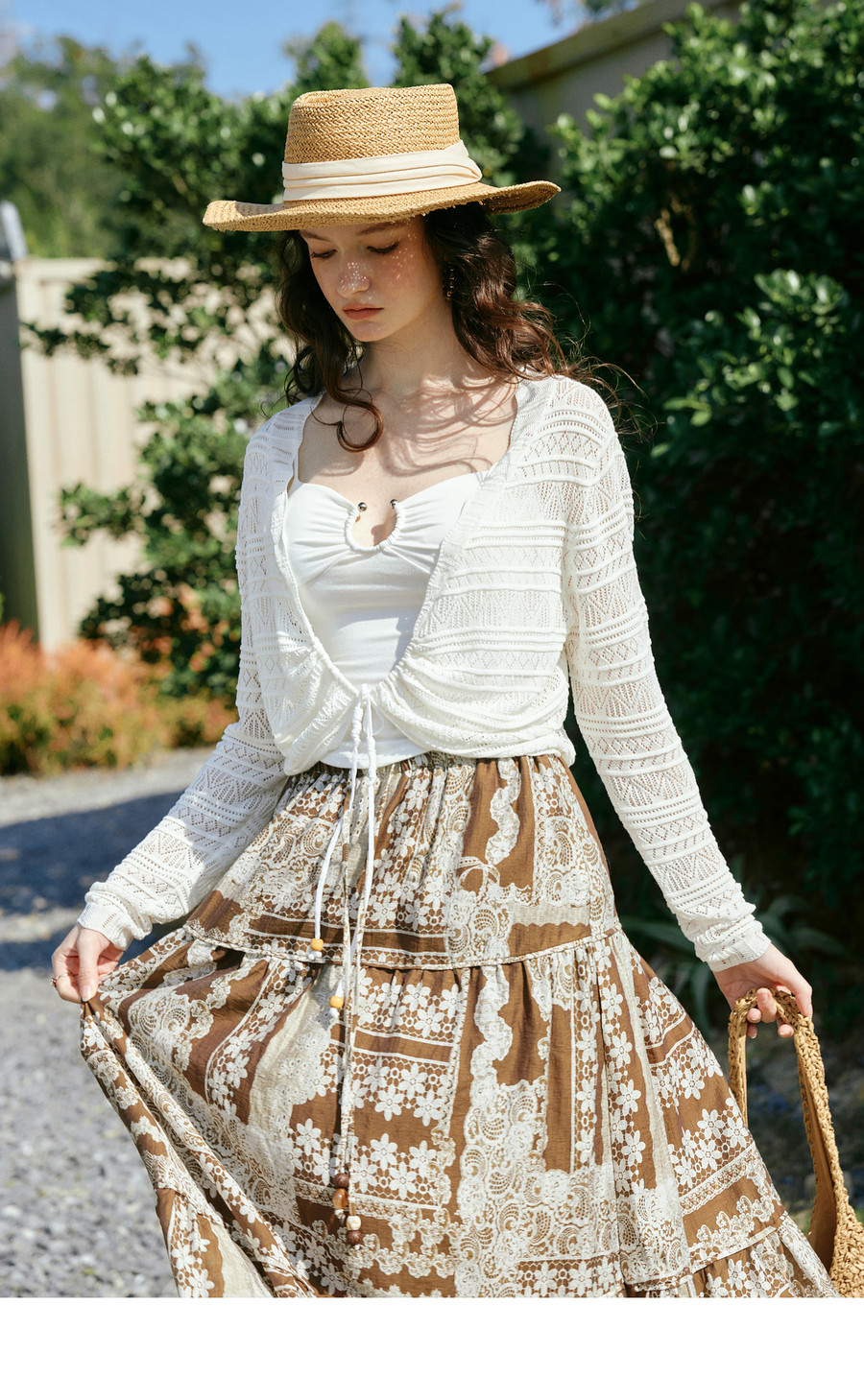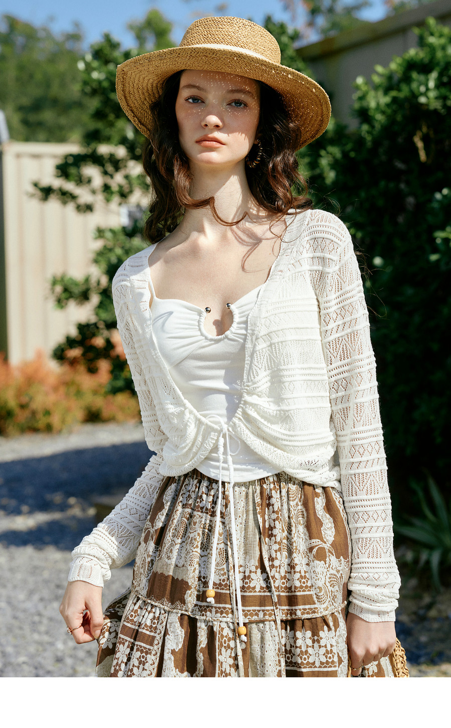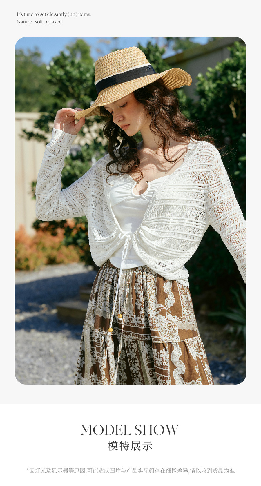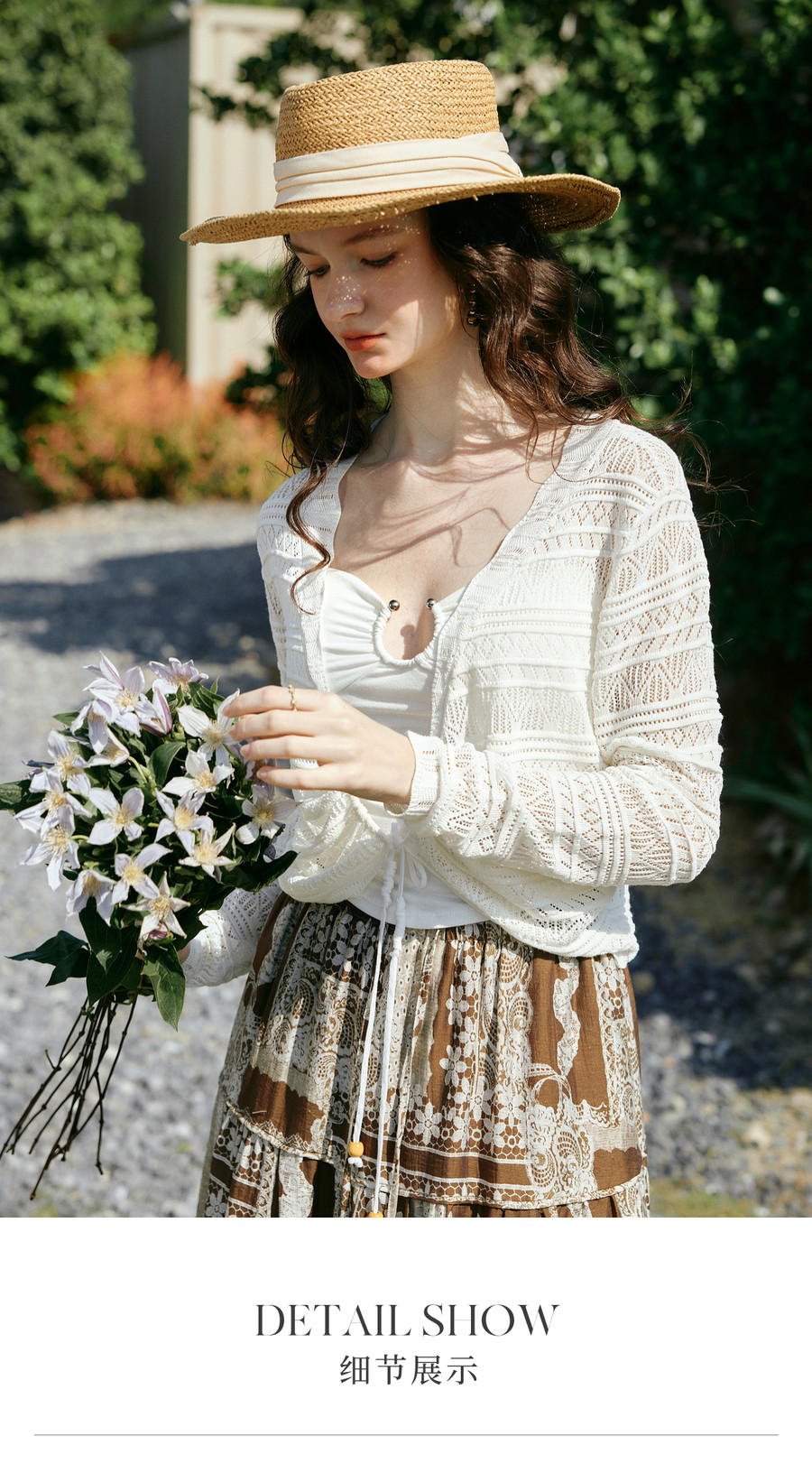 欧芮儿法式镂空挑孔V领毛针织开衫女夏季2026新款短款长袖上衣