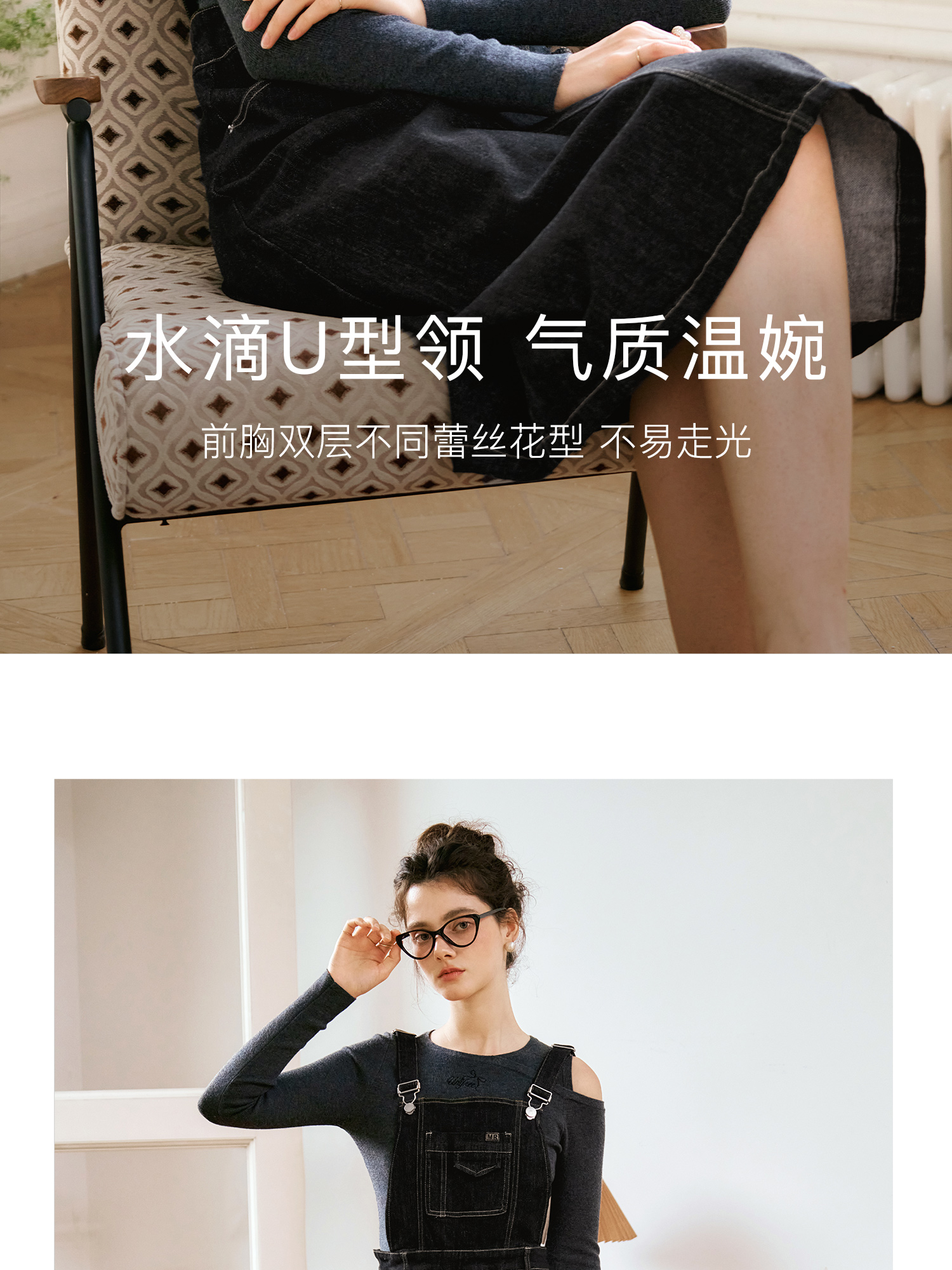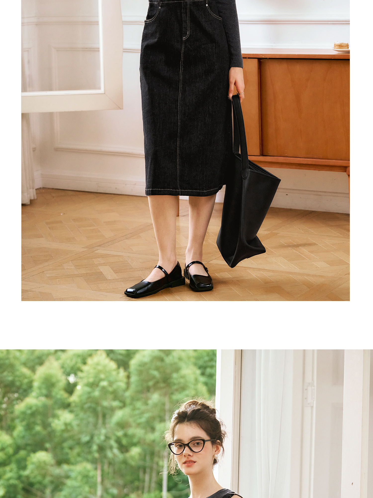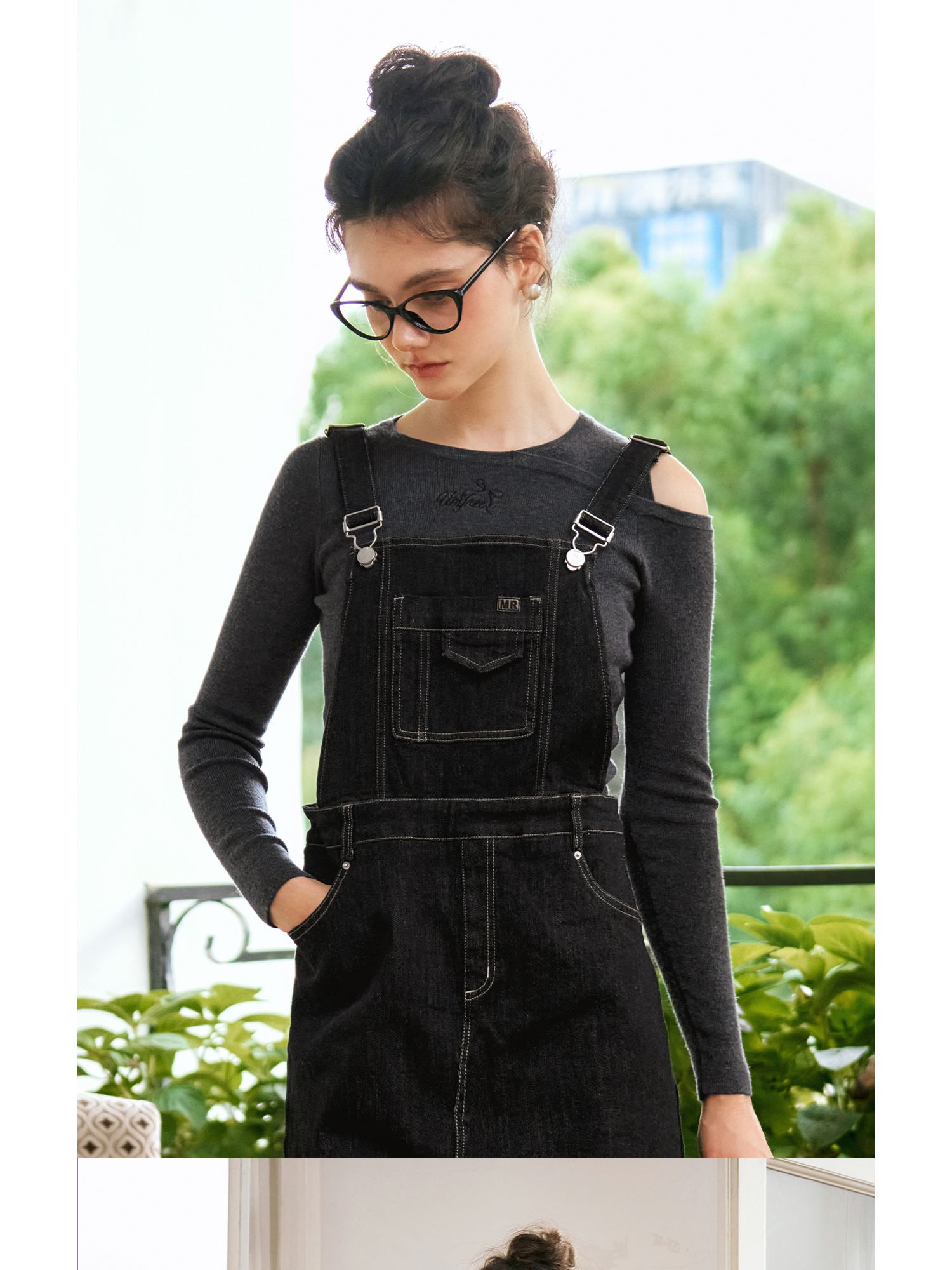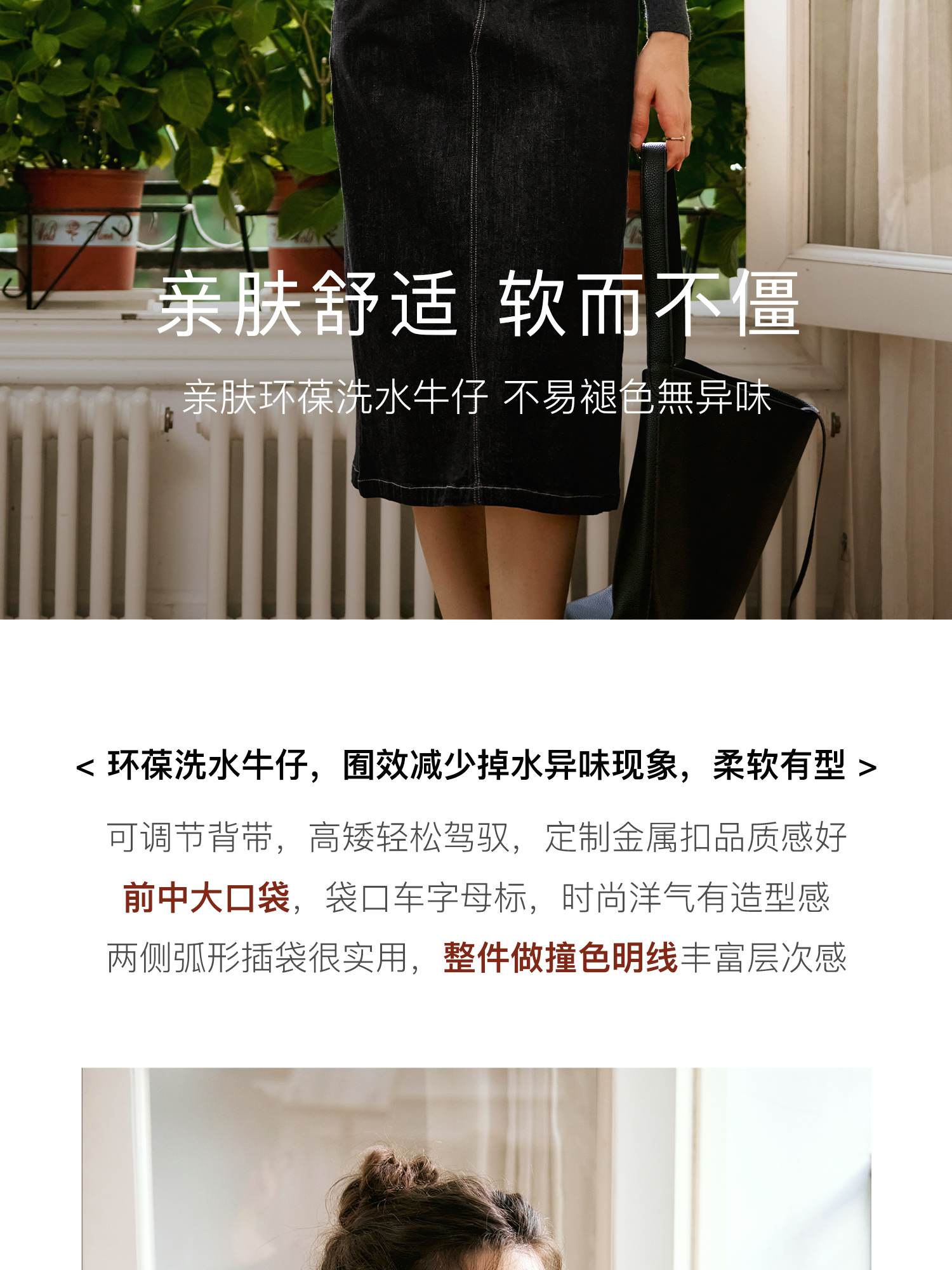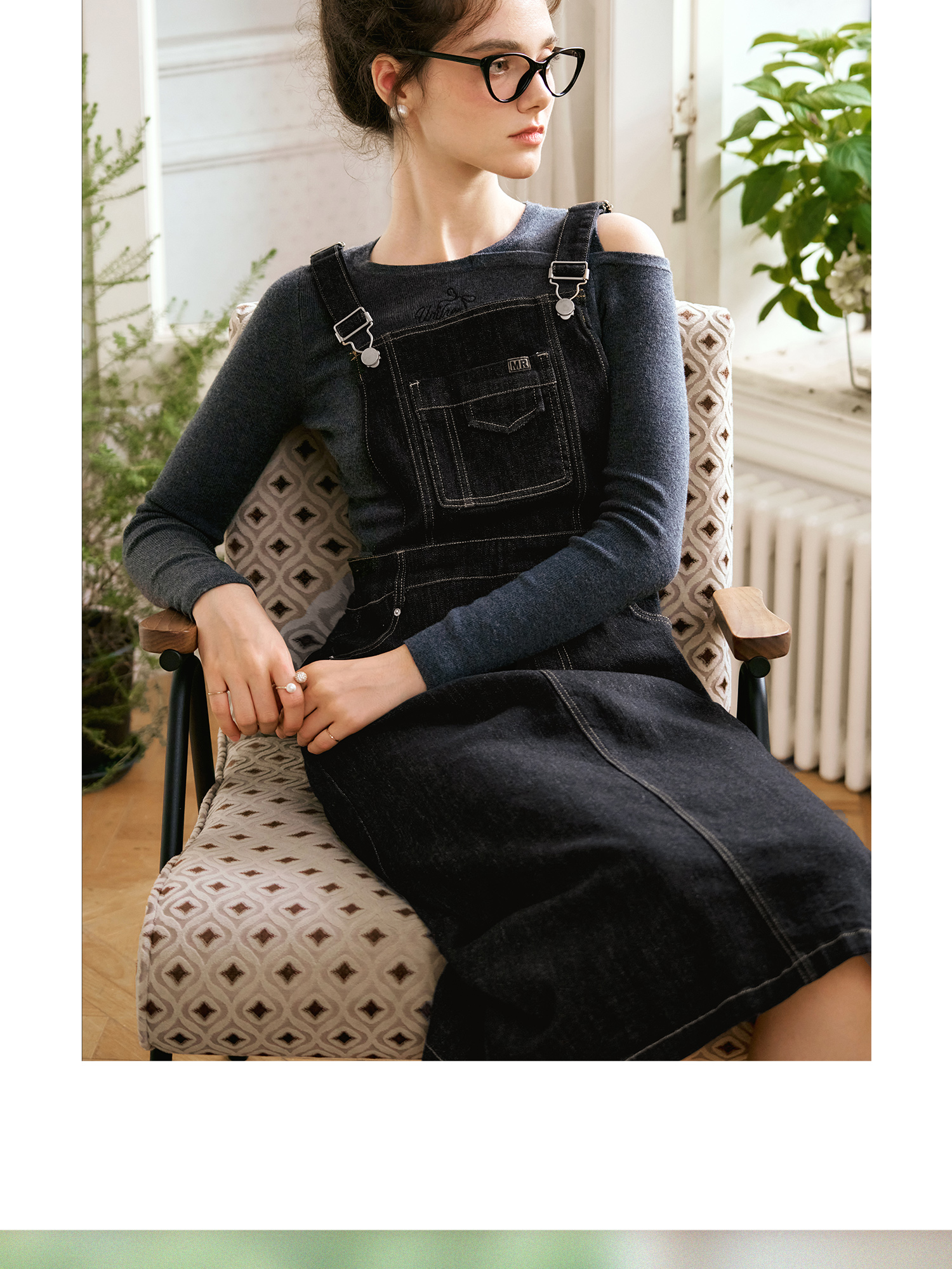 OLrain欧芮儿黑色背带连衣裙女秋季2024年新款复古百搭直筒牛仔裙