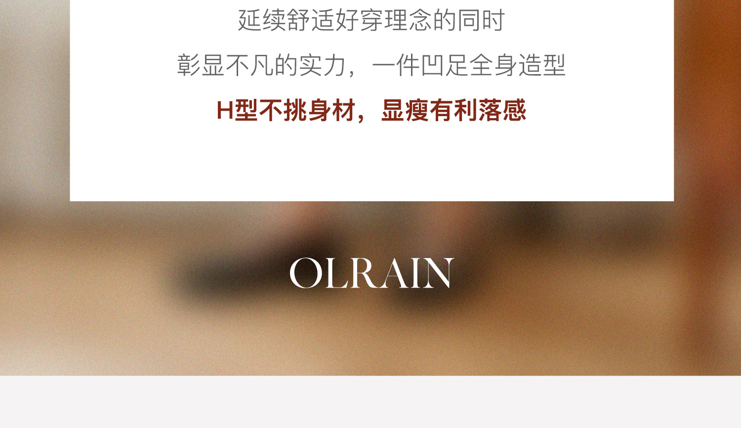 - “精致”是欧芮儿olrain品牌文化的核心,欧芮儿认为,精致的女人,不但要外在动人,更要内在迷人,内外兼修,有魅力、有气质、有内涵,自信而不自傲,优雅而不矫揉,自有万种风情而不轻浮,更不故作矜持。