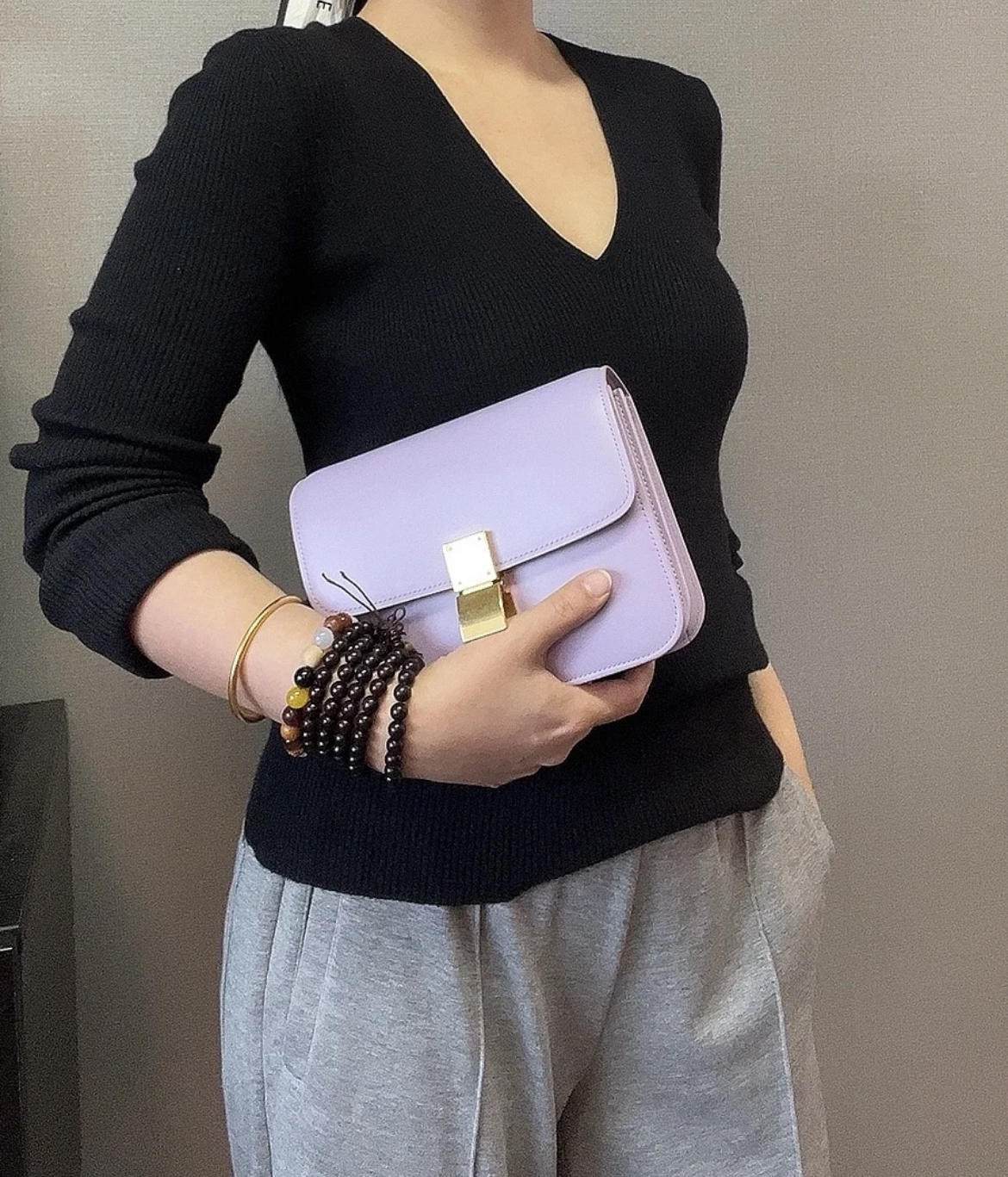 Celine 薰衣草 牙签纹牛皮 box teen 斜挎包