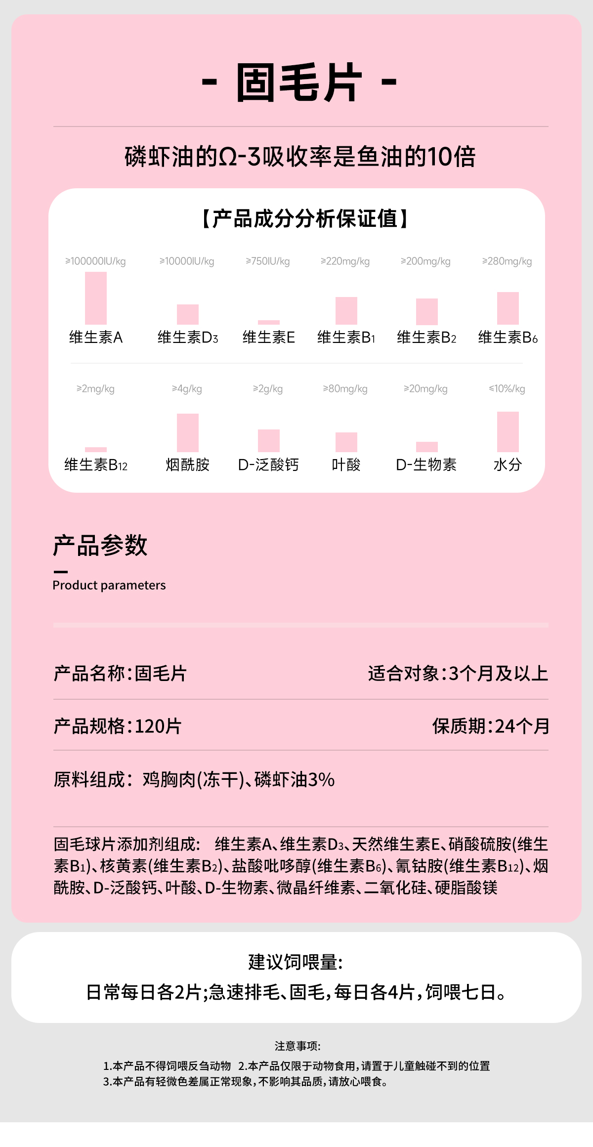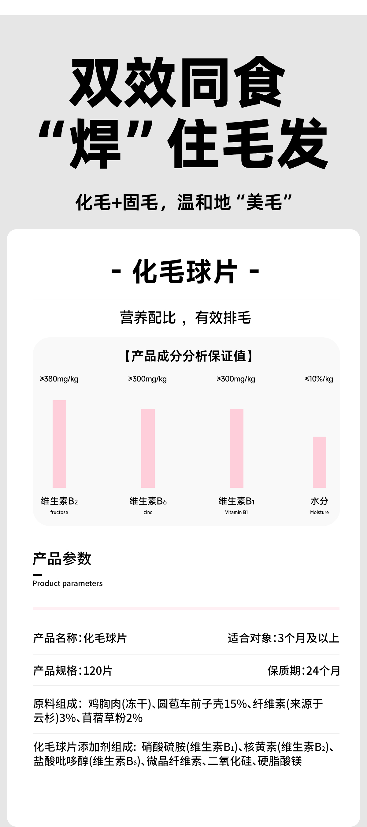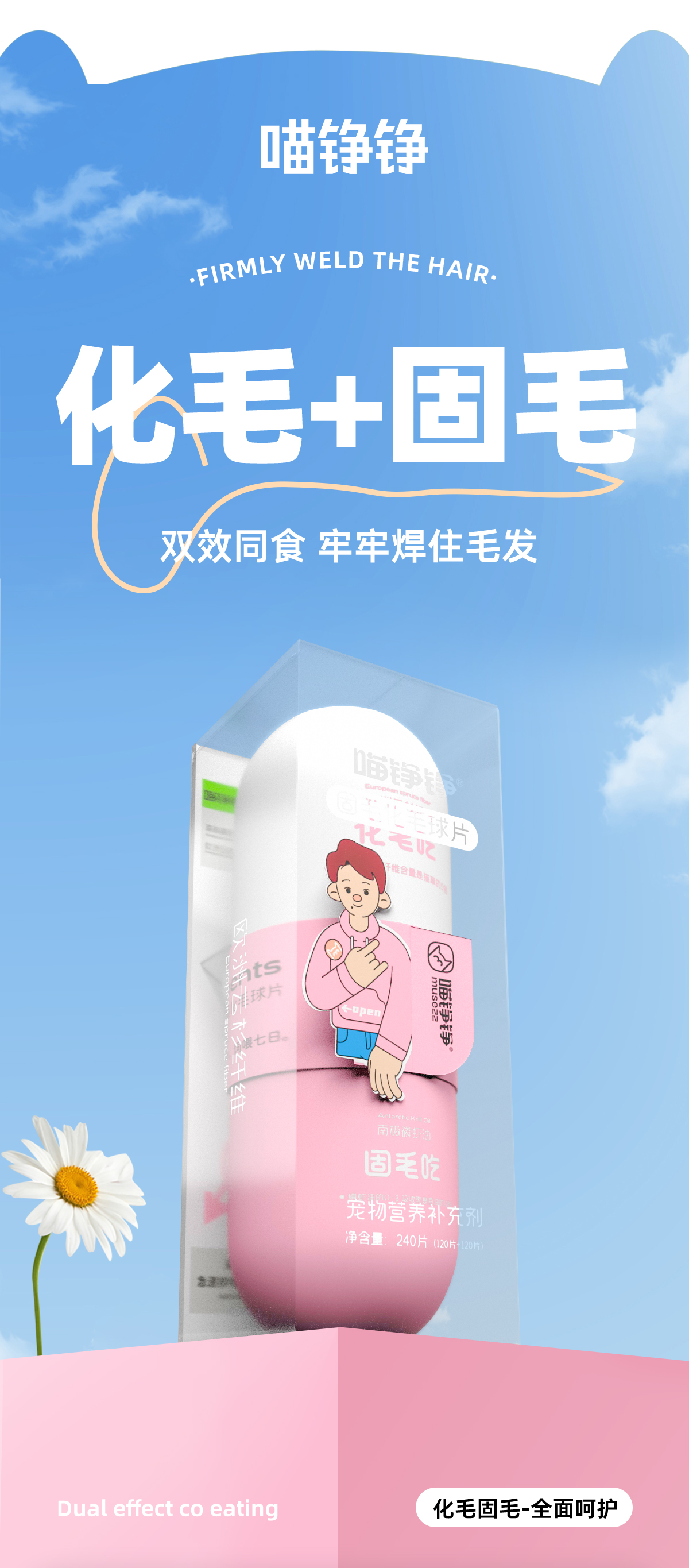 喵铮铮固毛化毛球片 240片/盒 磷虾油美毛固毛 植物纤维促消化排毛球