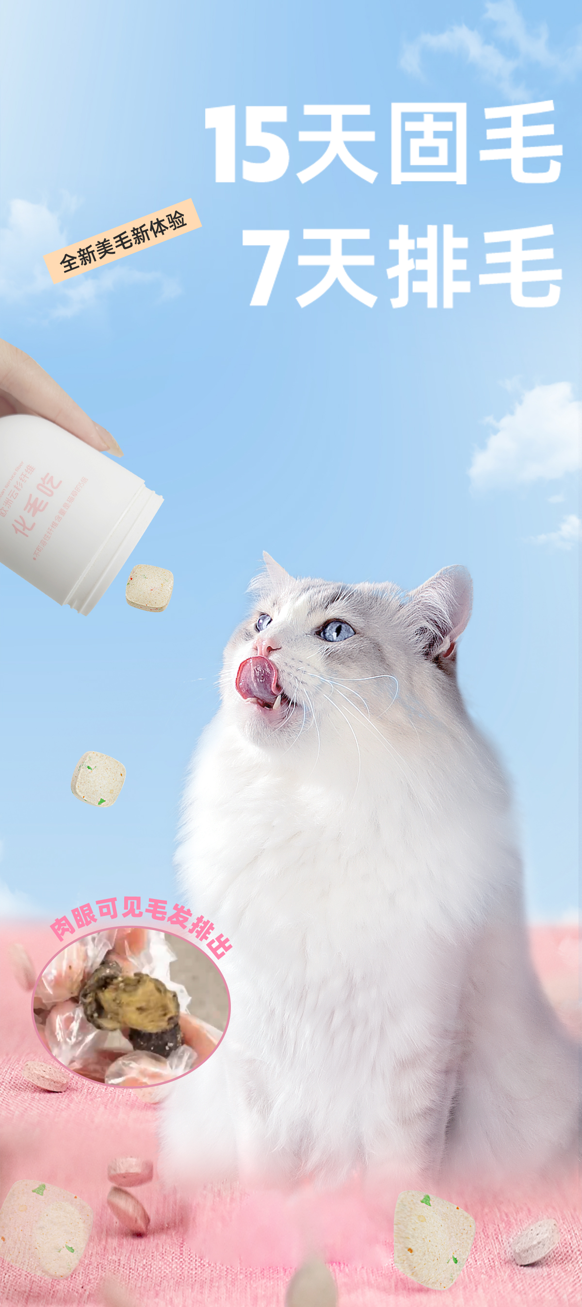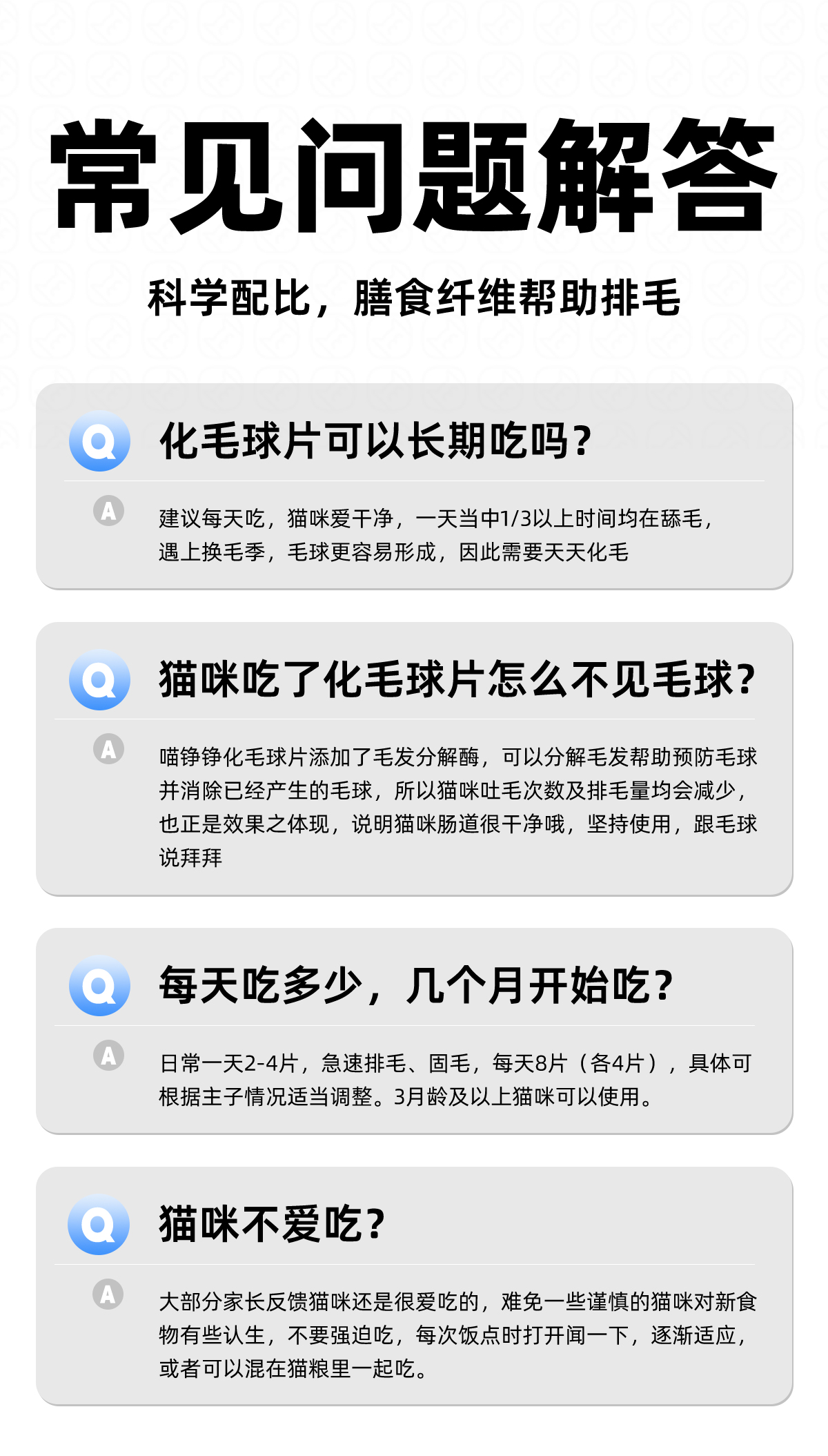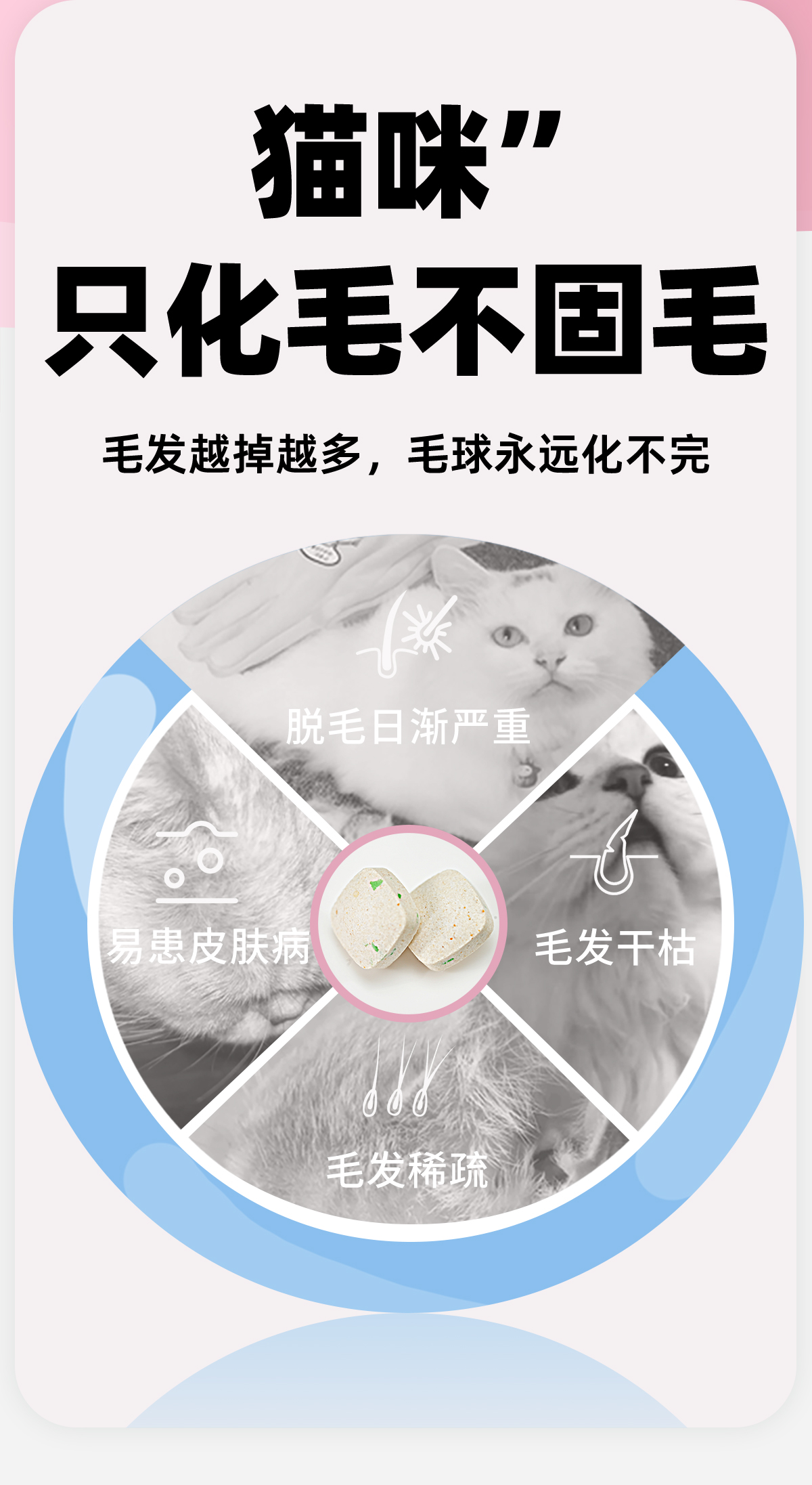 喵铮铮固毛化毛球片 240片/盒 磷虾油美毛固毛 植物纤维促消化排毛球