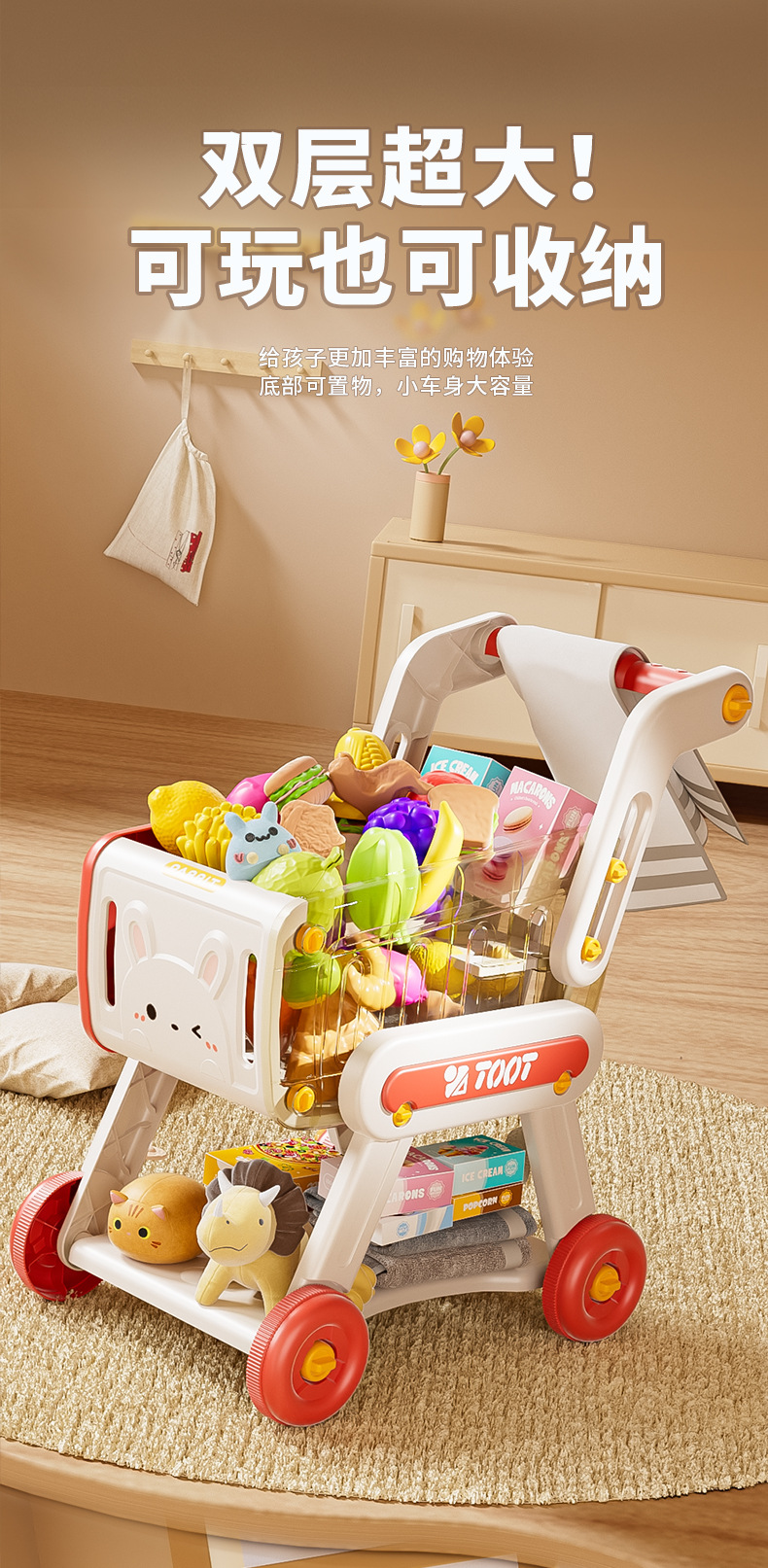 【在家购物!根本停不下来来】萌趣爆款超大尺寸购物车玩具 女孩过家家厨房 认知果蔬 学习认知 可玩也可收纳 室内外皆可用 体验超市购物