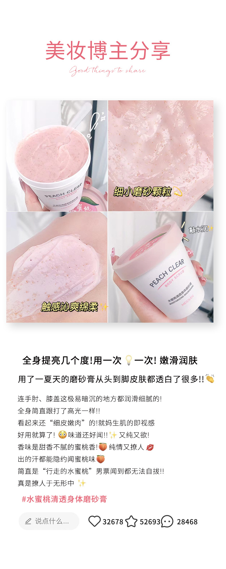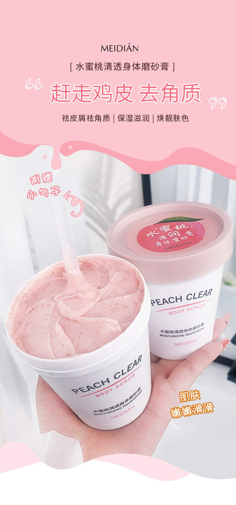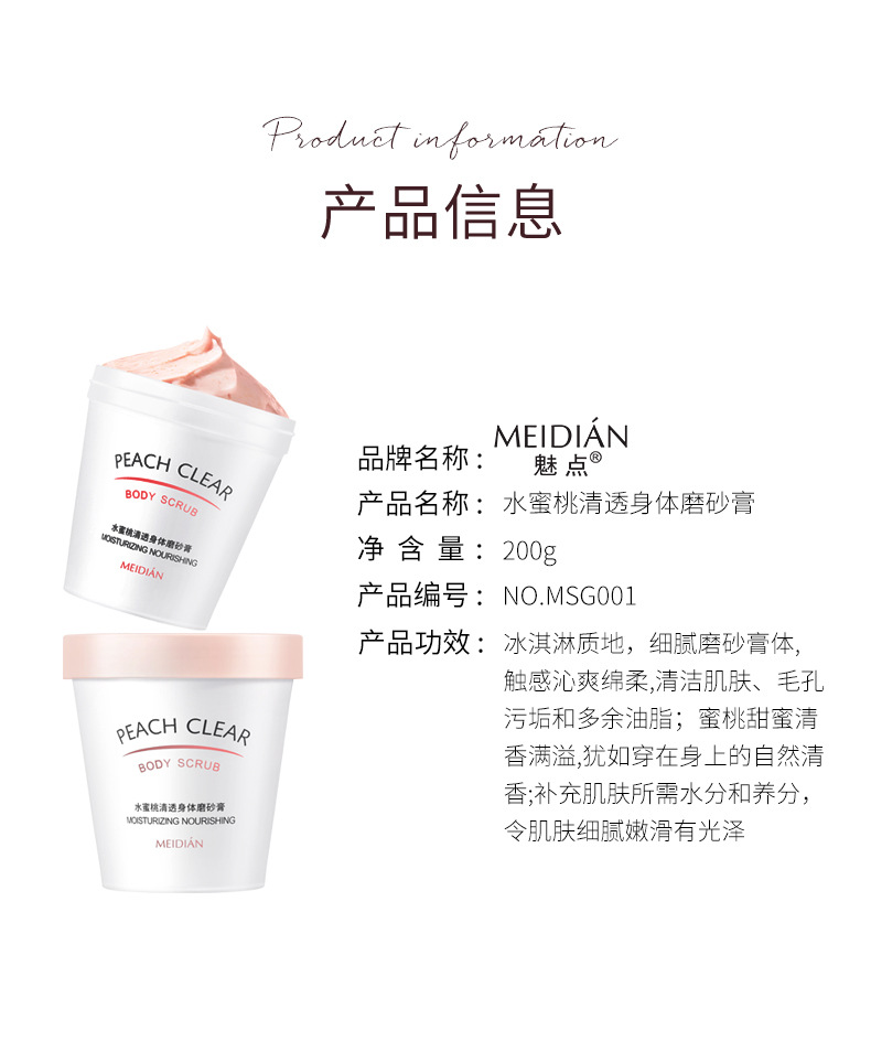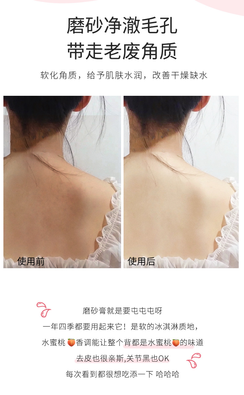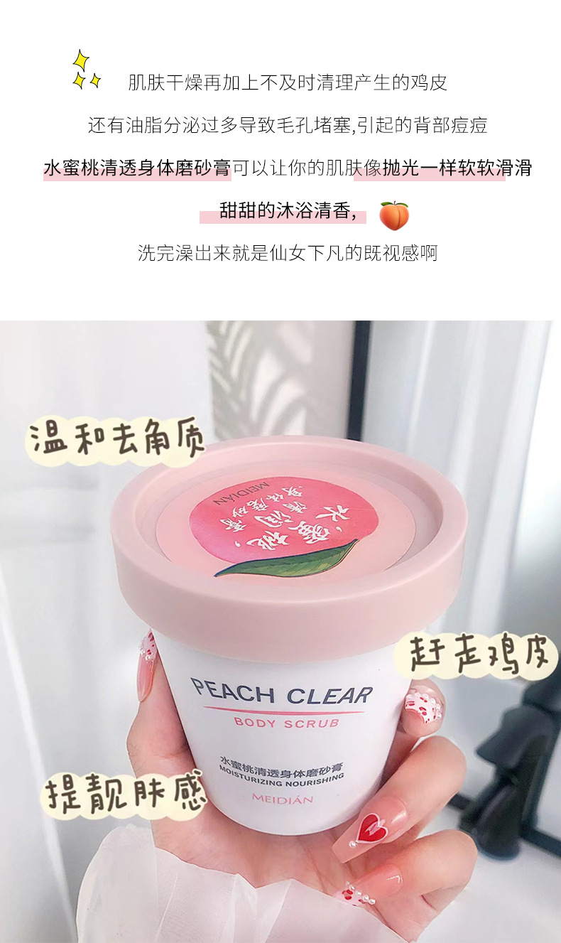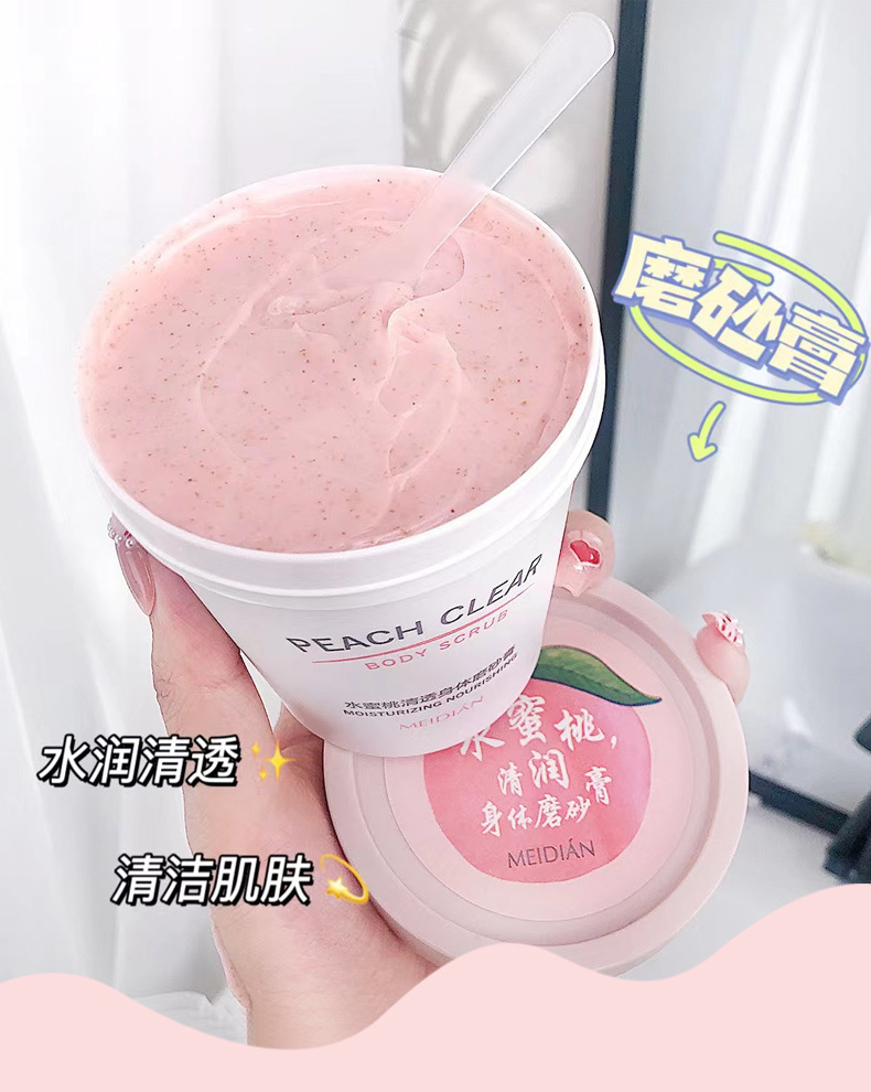 「拍1发2!9.9元包邮」魅点水蜜桃身体磨砂膏 去角质去鸡皮死皮清洁冰淇淋磨砂膏 商品图4