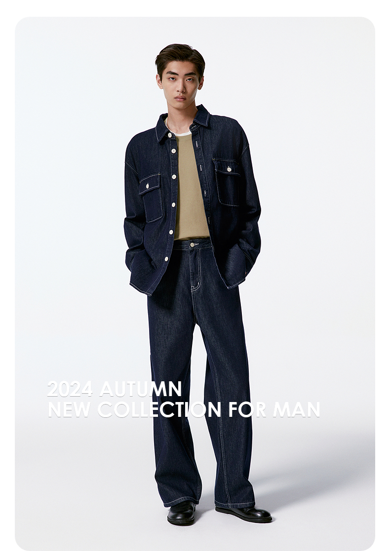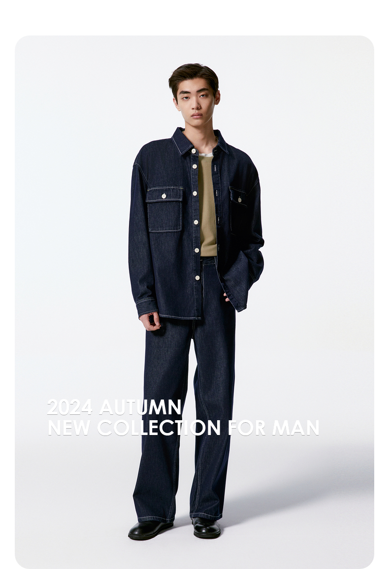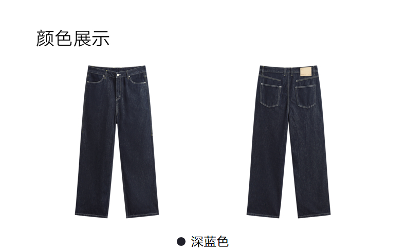 GXG男装 深蓝全棉直筒牛仔裤宽松长裤 24年秋G24X053023