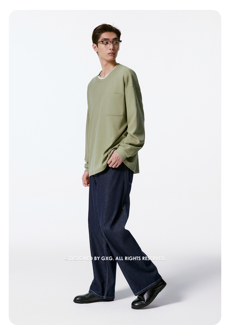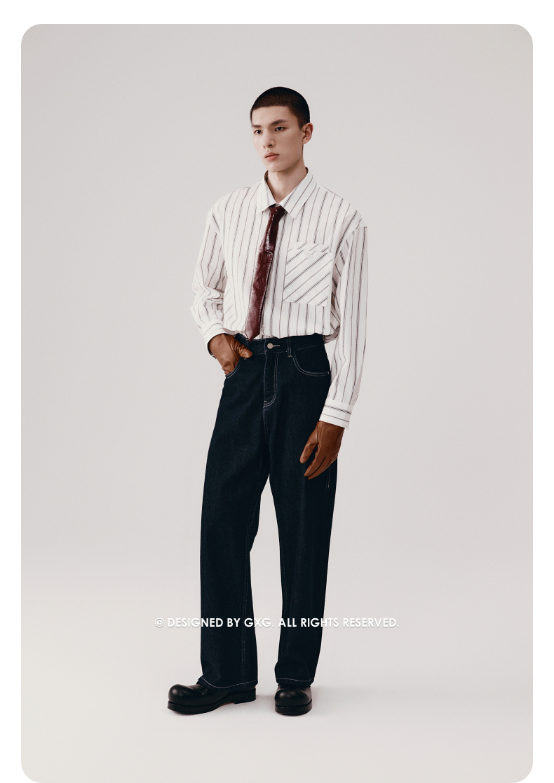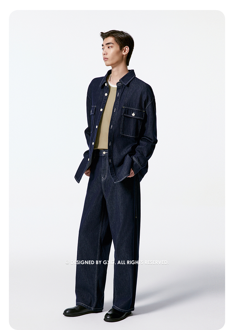 GXG男装 定织竖条肌理宽松直筒阔腿擦色牛仔裤 2025秋季新品