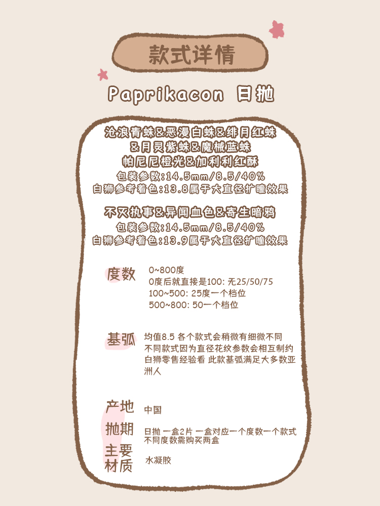 Paprikacon旗下 ·cos瞳系列 沧浪青蛛&恶漫白蛛&绯月红蛛&月灵紫蛛&帕尼尼橙光&加利利红酥&魔械蓝蛛&不灭执事&异闻血色&寄生暗鸦 日抛