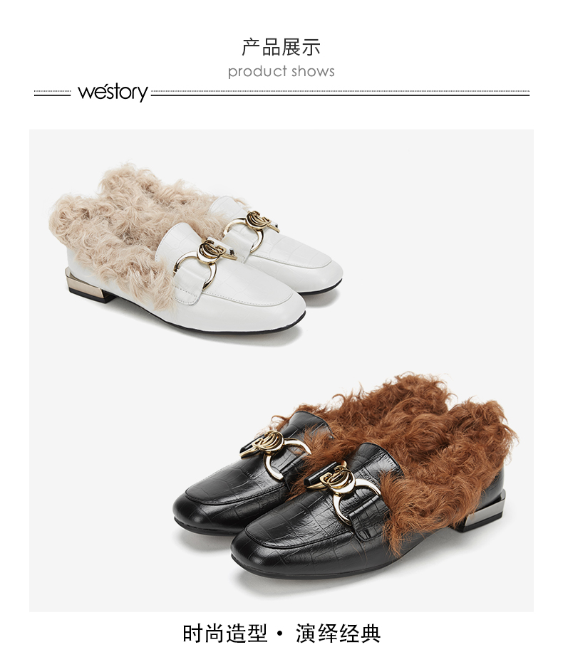westory毛毛乐福鞋真皮羊毛里 2019冬季保暖时尚气质W29CM70491