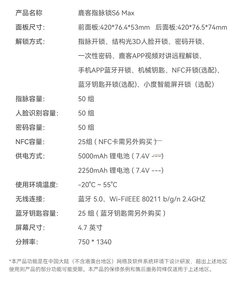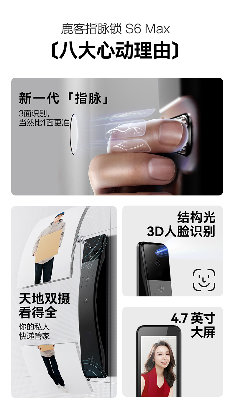 鹿客S6Max指静脉猫眼双摄大屏智能锁