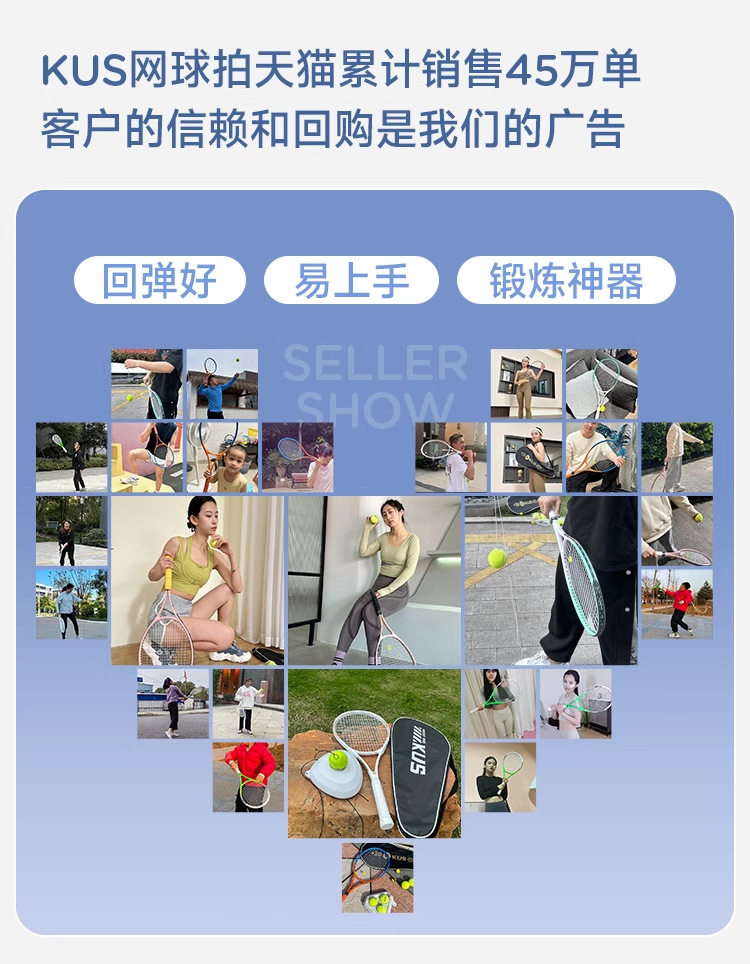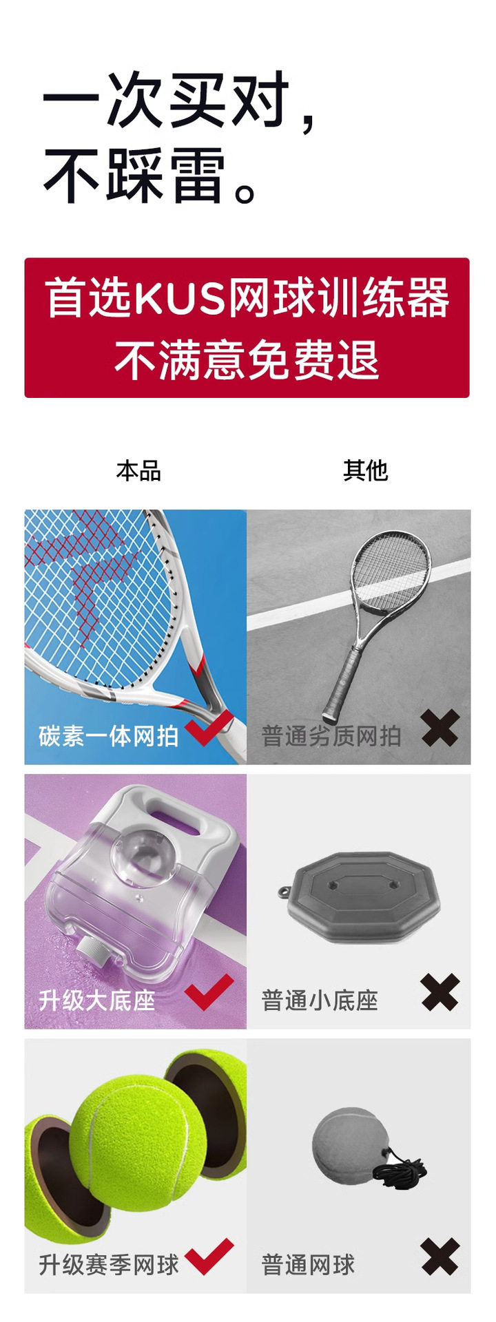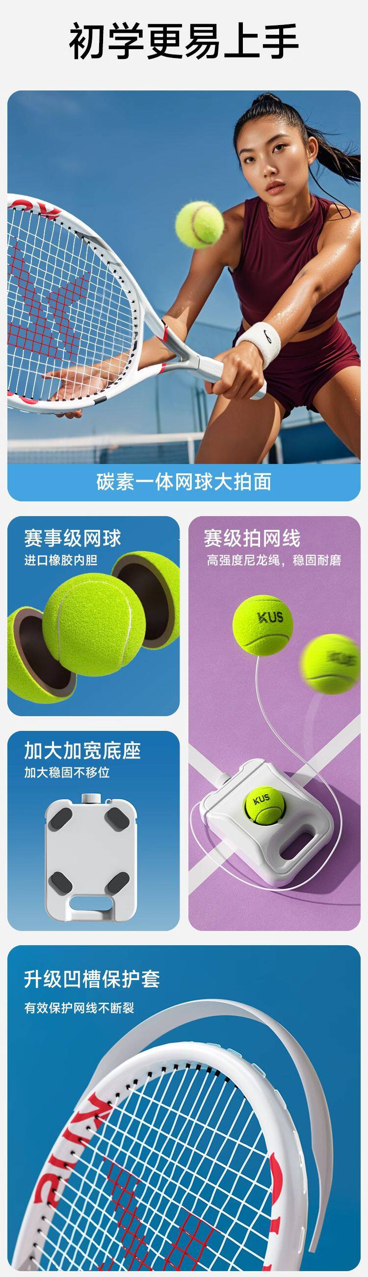 KUS碳素网球训练器打带线回弹自练神器初学者一个人的网球拍