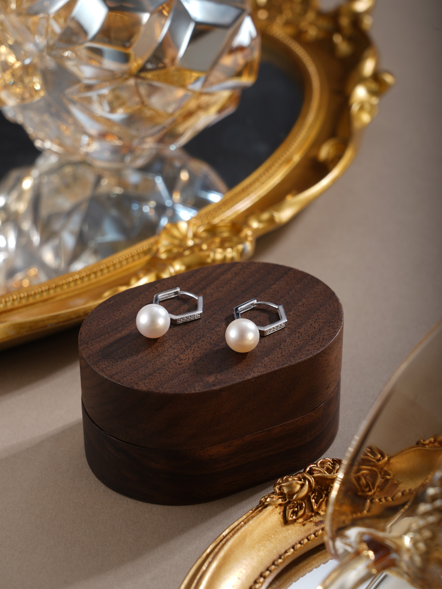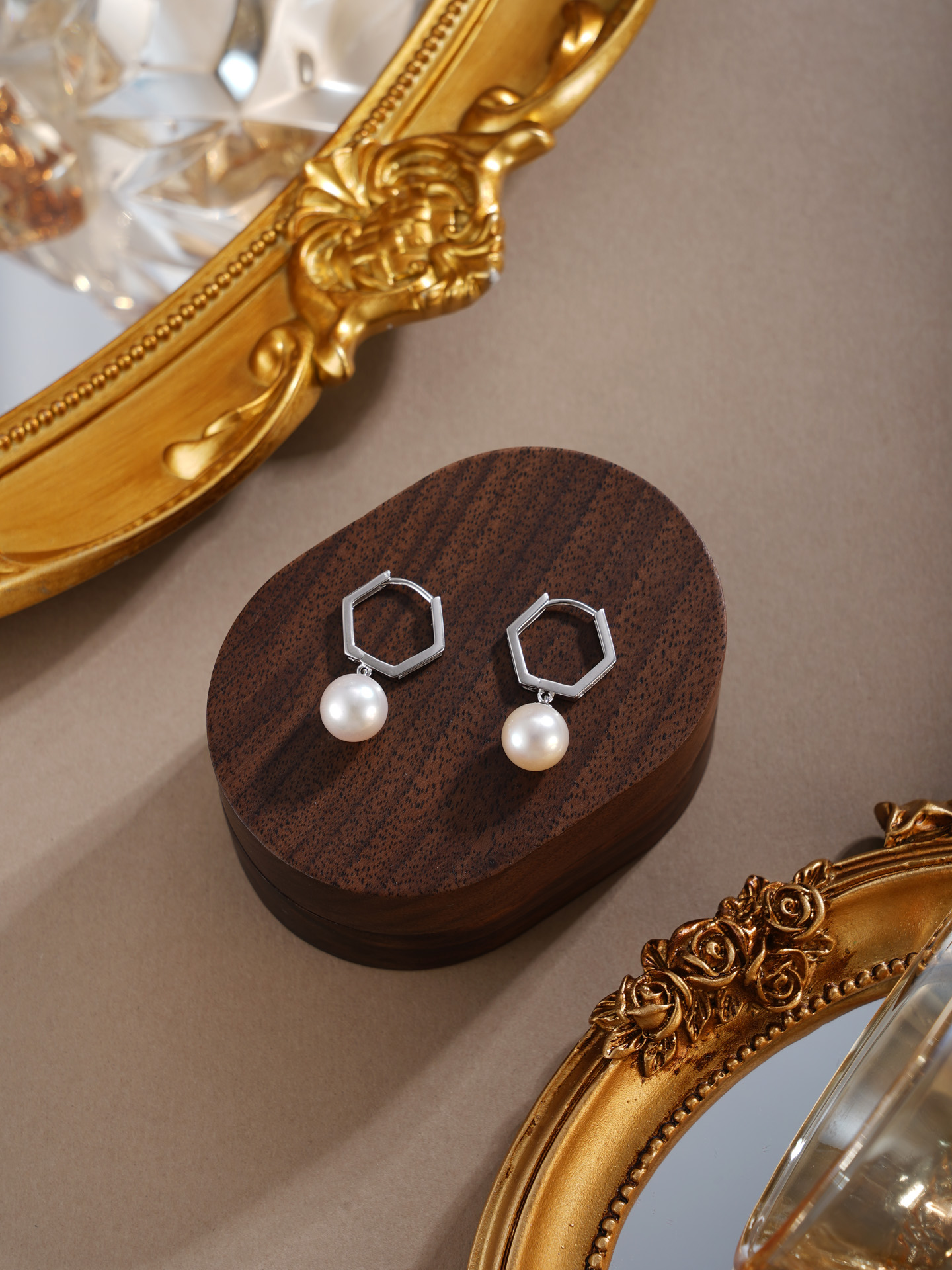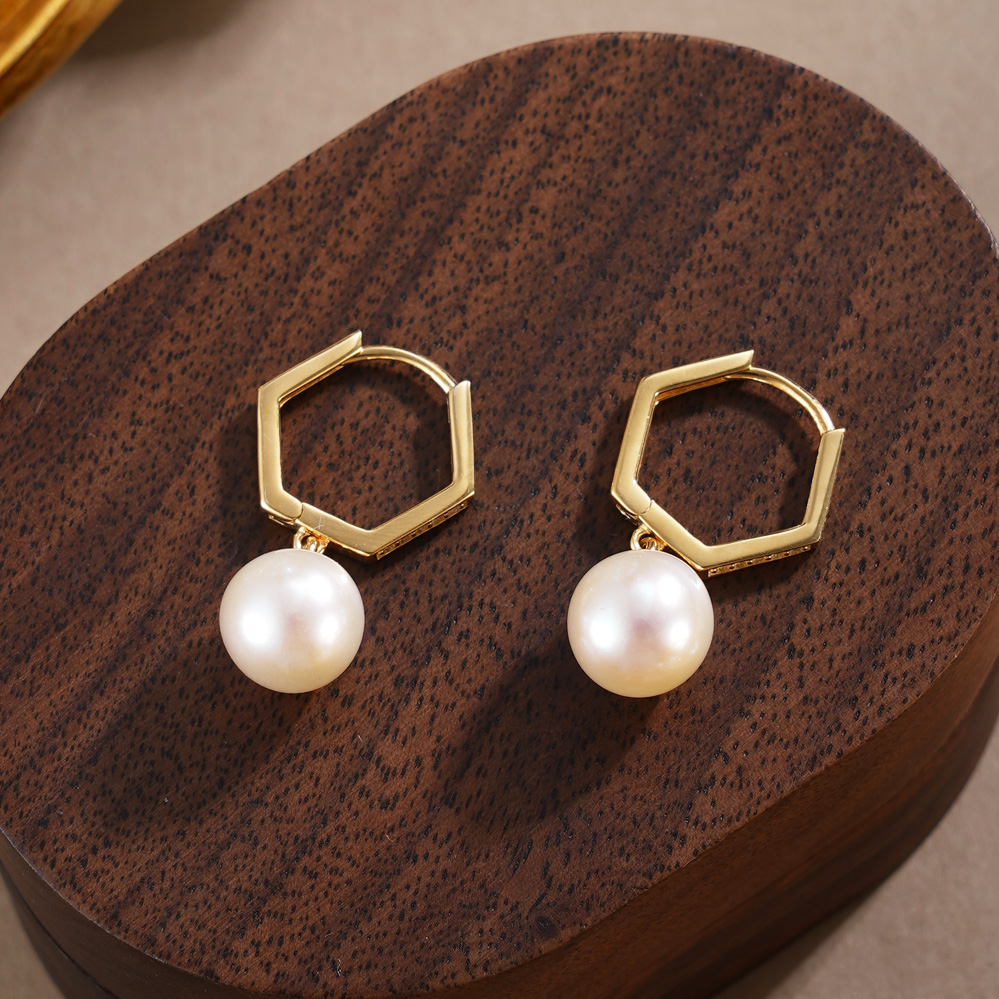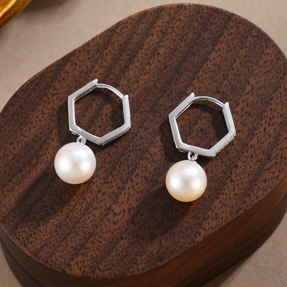 子佩集【絮雪凝华】银S925珍珠惜王妃耳环【E4064】双色六边形2602