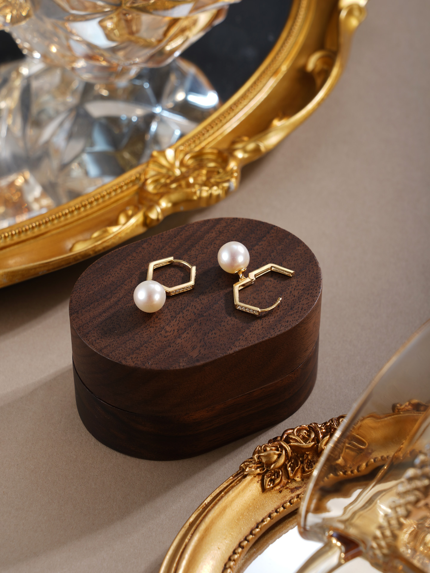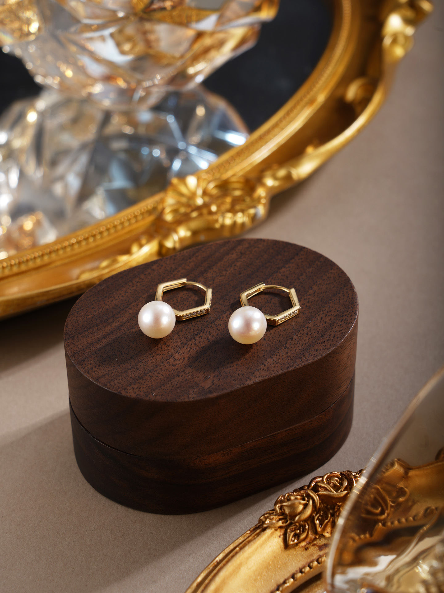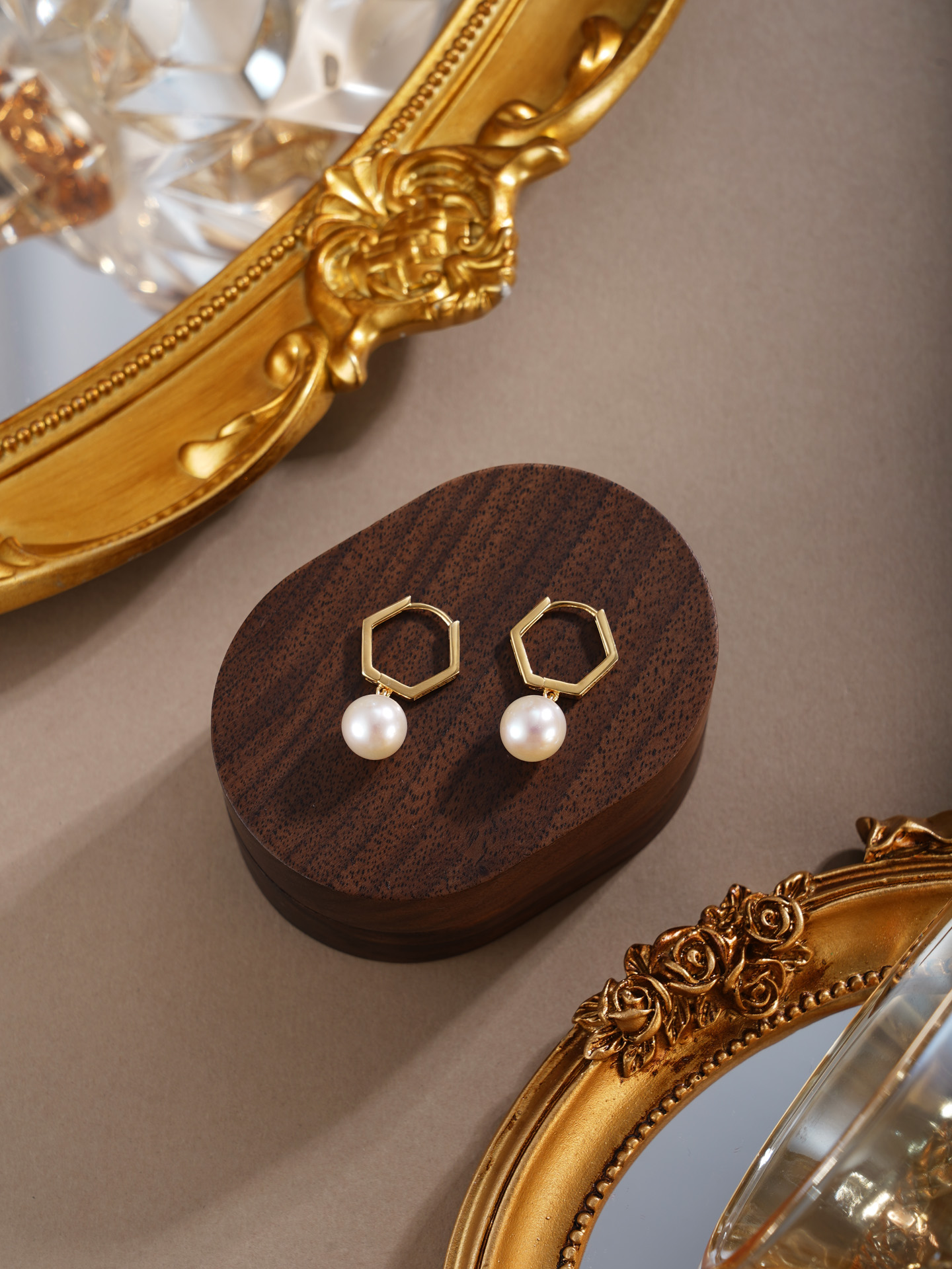 子佩集【絮雪凝华】银S925珍珠惜王妃耳环【E4064】双色六边形2602