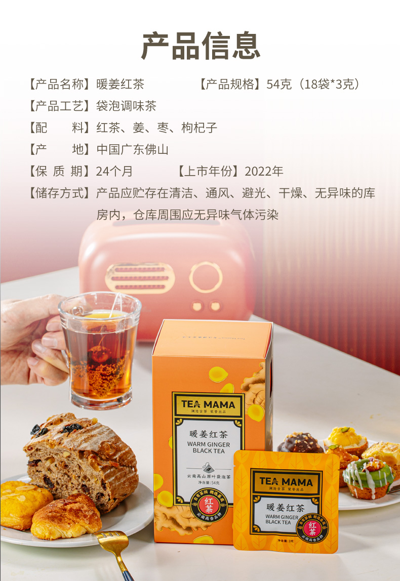 2022年茶妈妈暖姜红茶袋泡茶54g