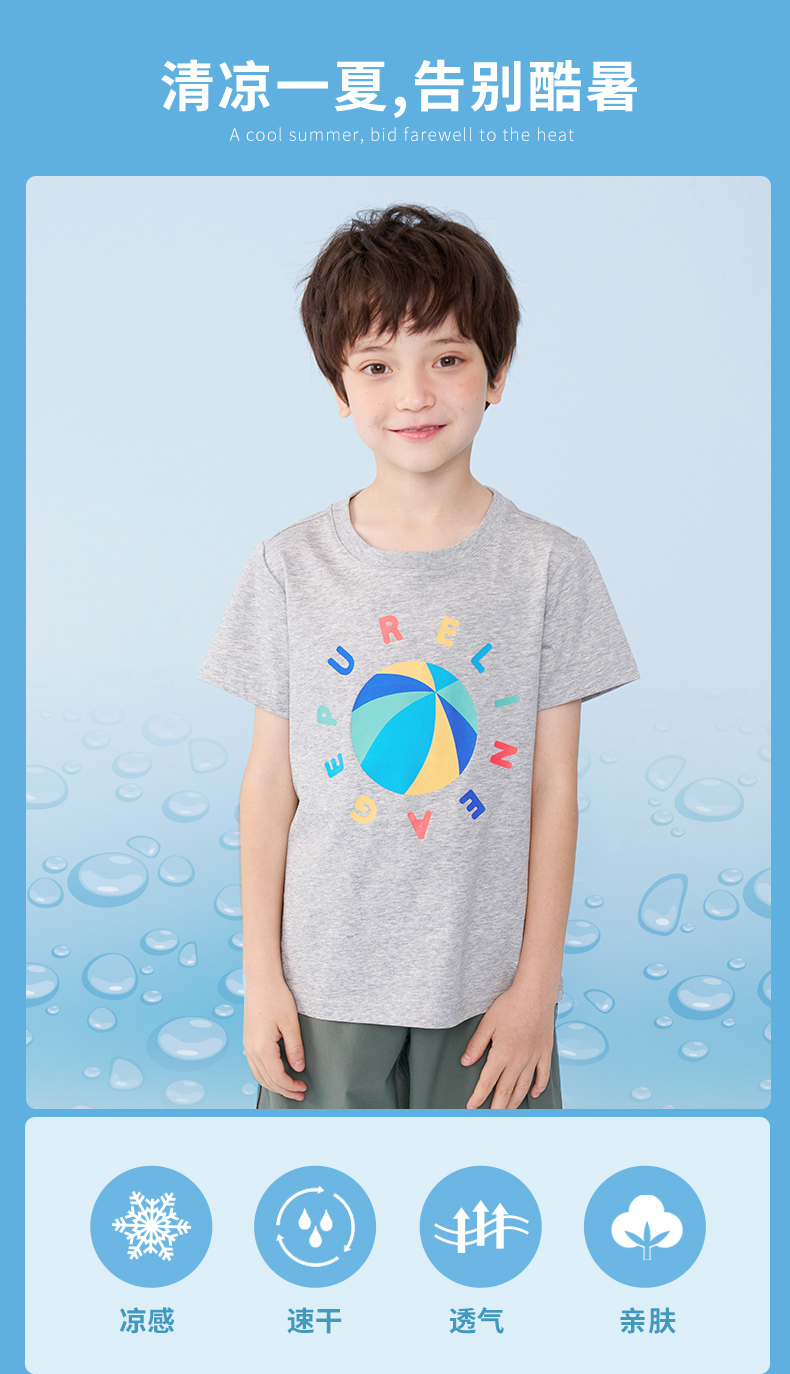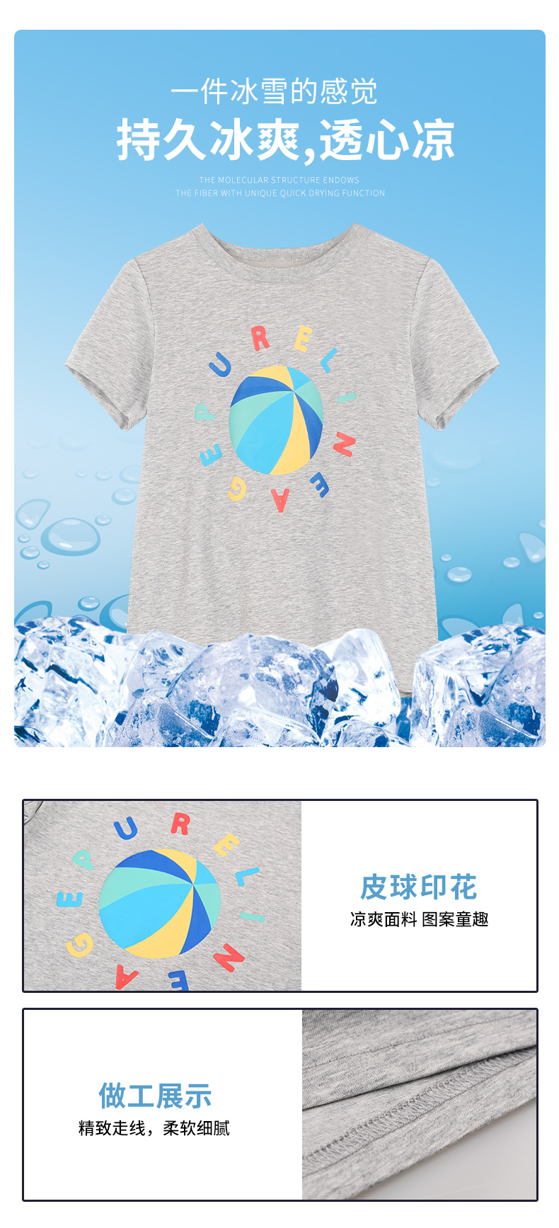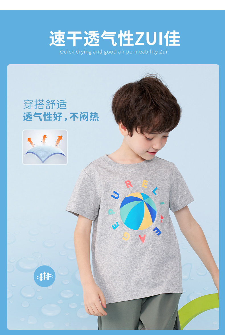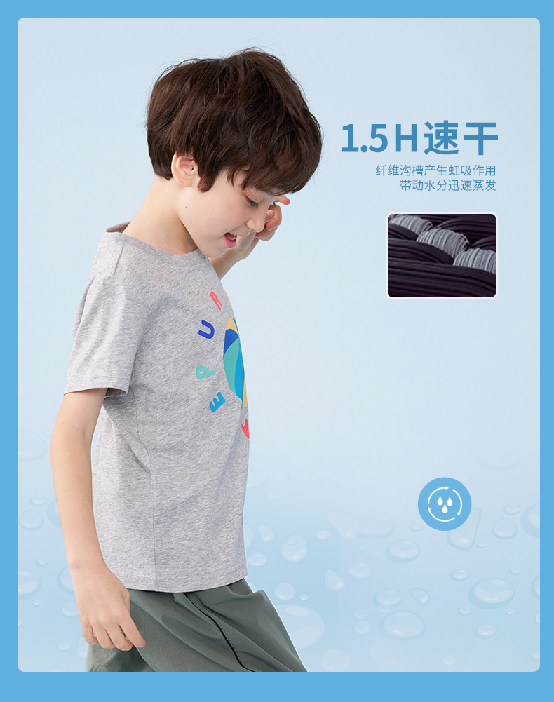 mettekids男童短袖t恤儿童夏季凉感透气童装中大童圆领速干上衣