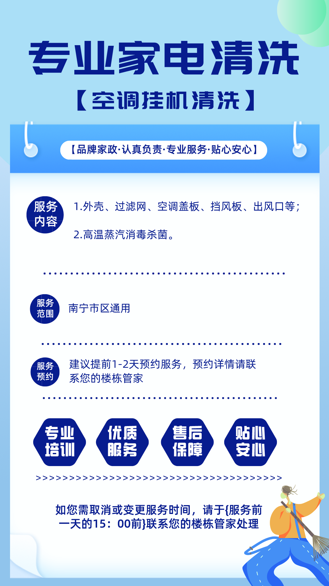 服务说明:临近春节期间库存较满,请提前安排您的保洁服务,若因库存问题导致无法服务,请您谅解!