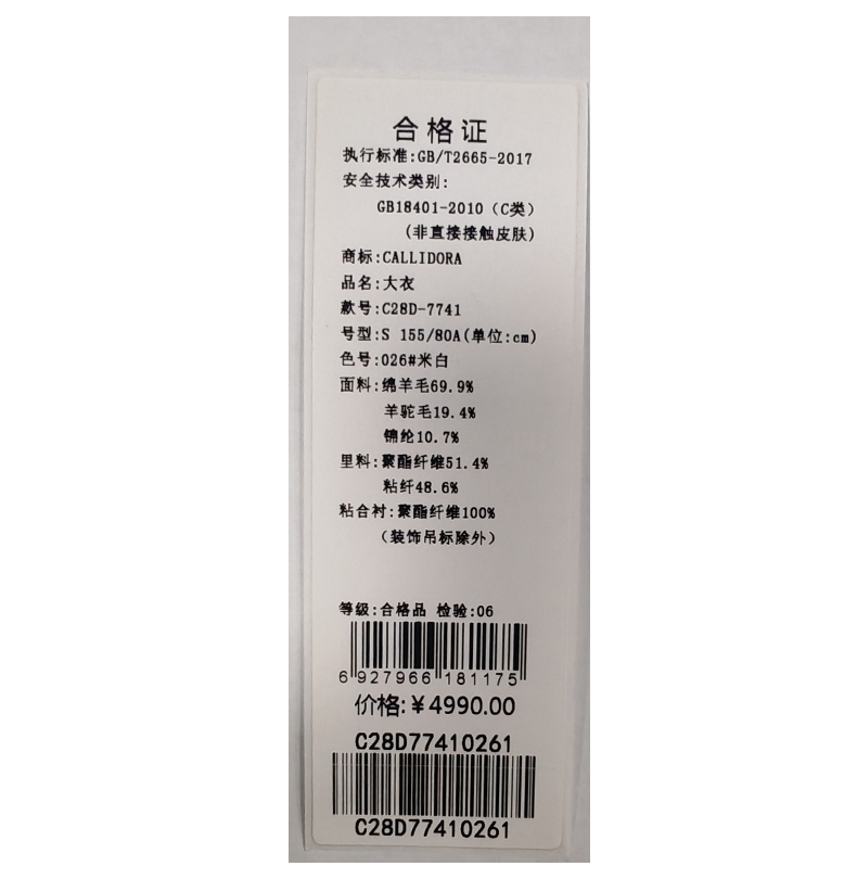 卡莉朵拉大衣C28D7741