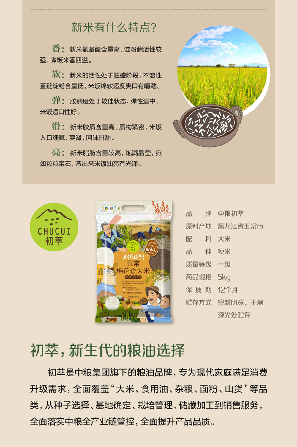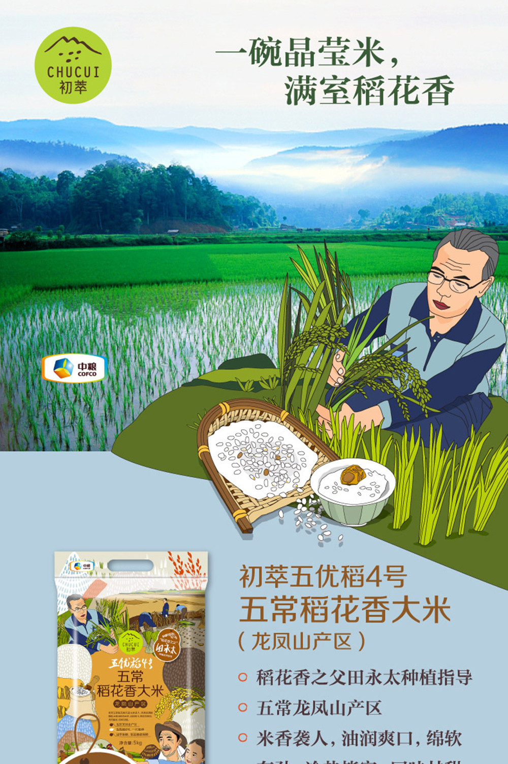 中粮初萃 五常龙凤山稻花香大米5kg 东北大米 五常大米
