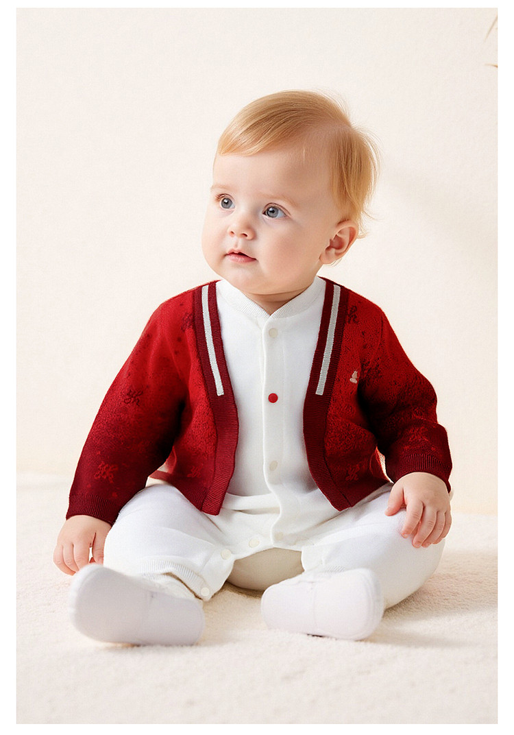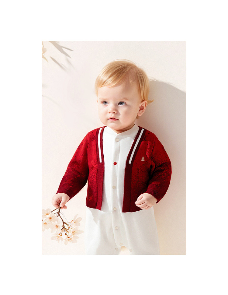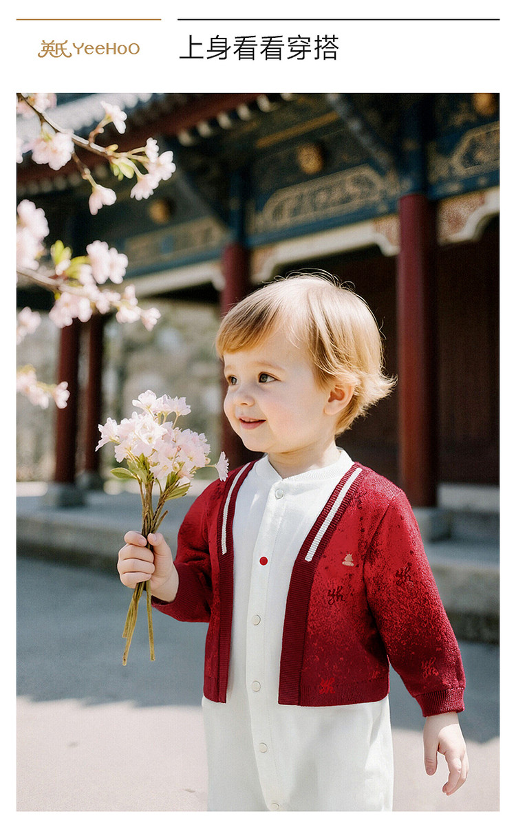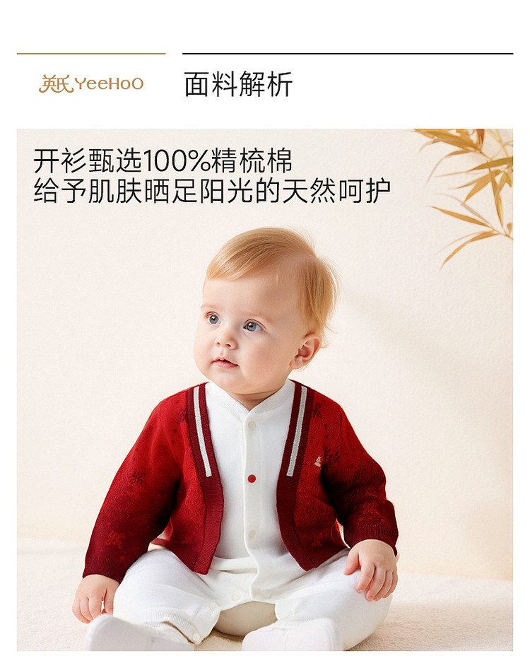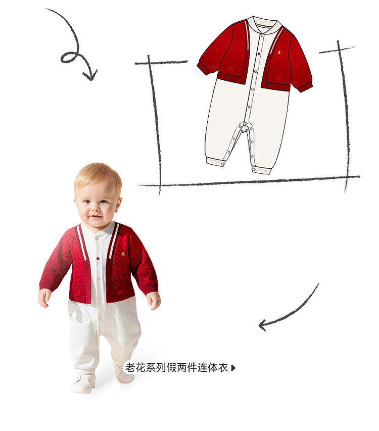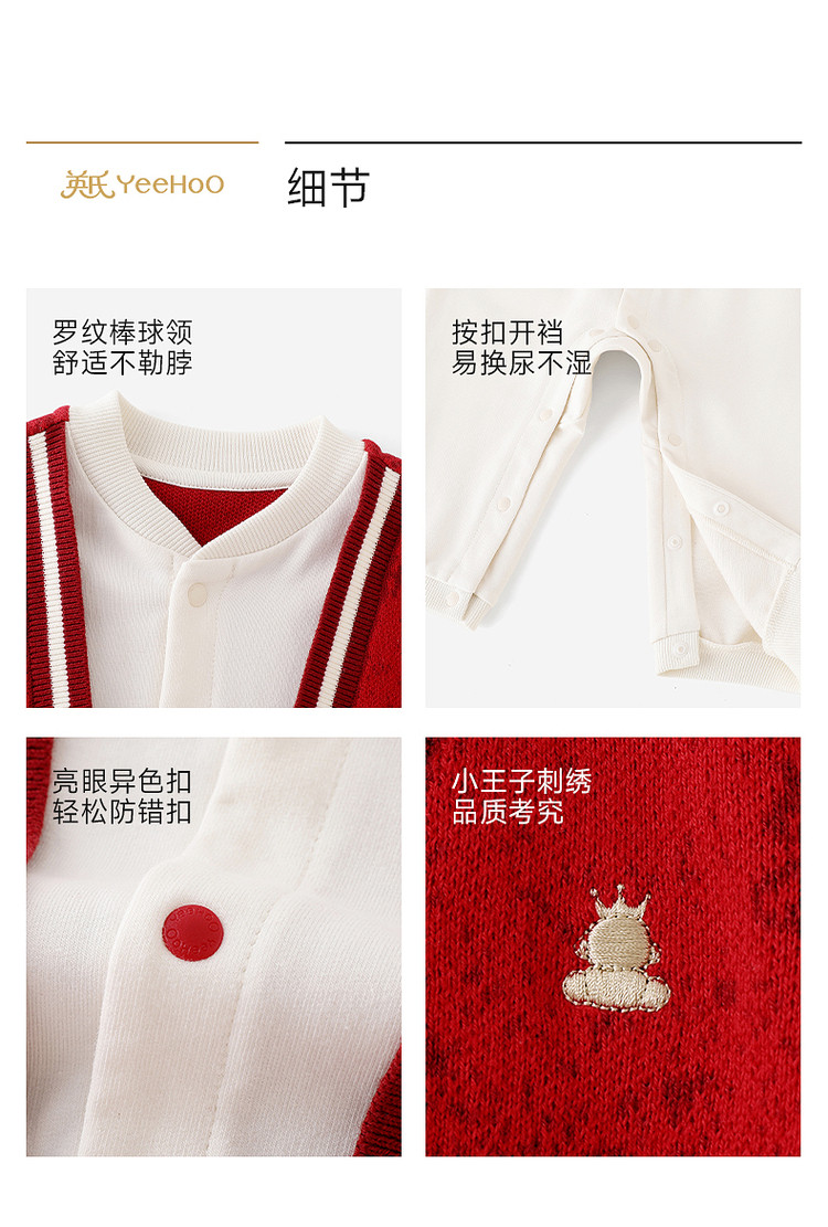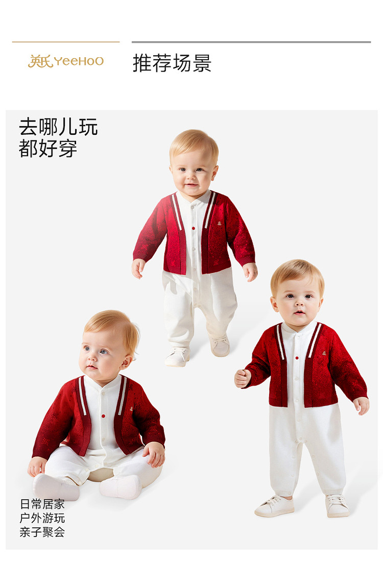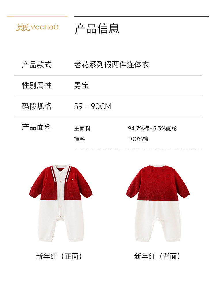 英氏婴儿衣服长袖宝宝假两件连体衣新年外出爬服哈衣YRHAJ1S001A