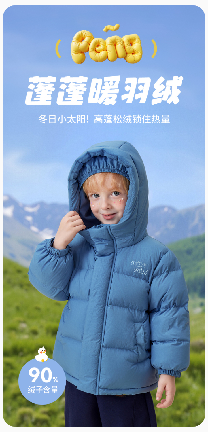 【90-140】【石墨烯发热】【MQDmini】男女童纯色连帽羽绒服