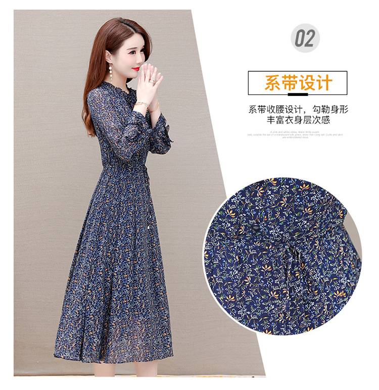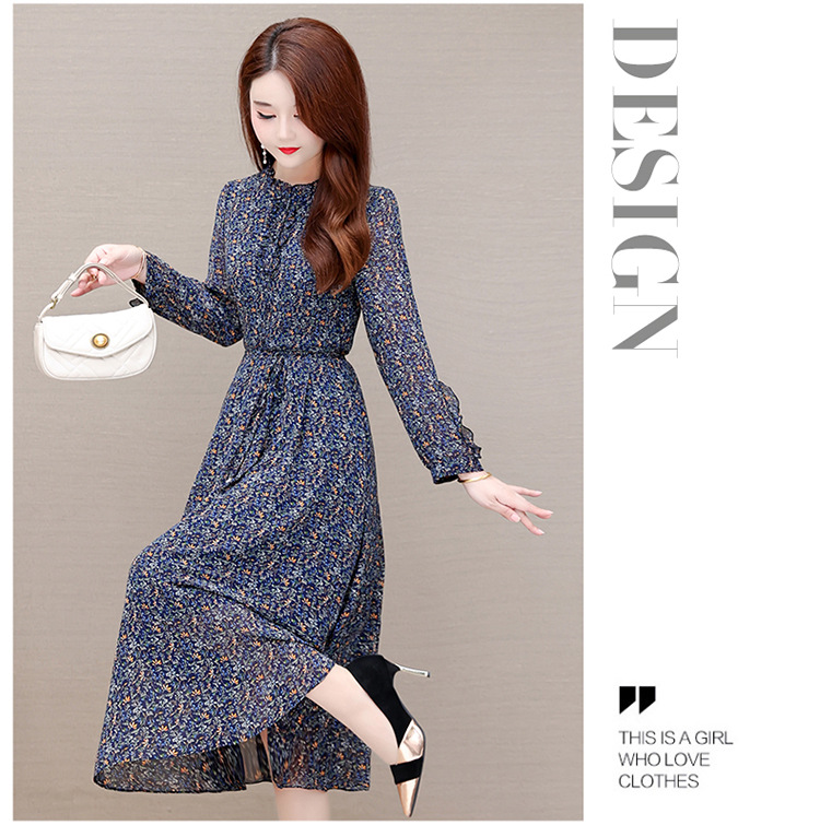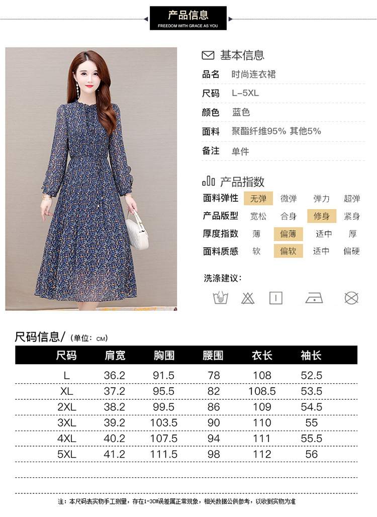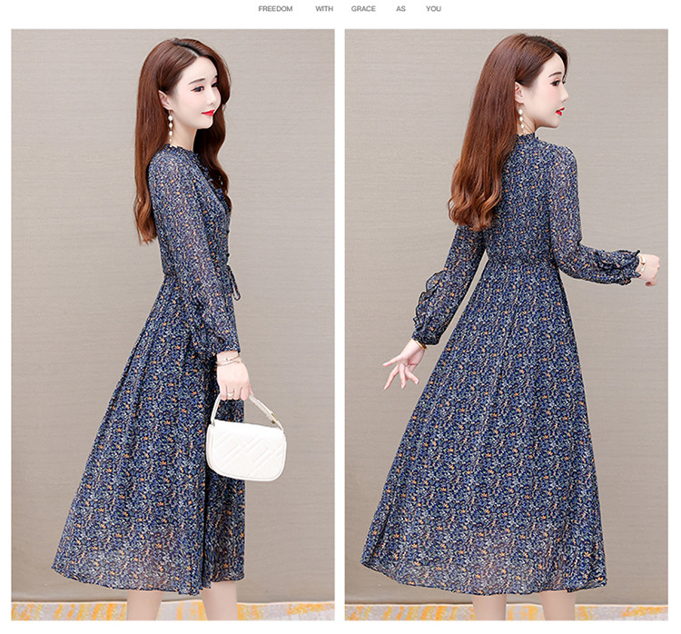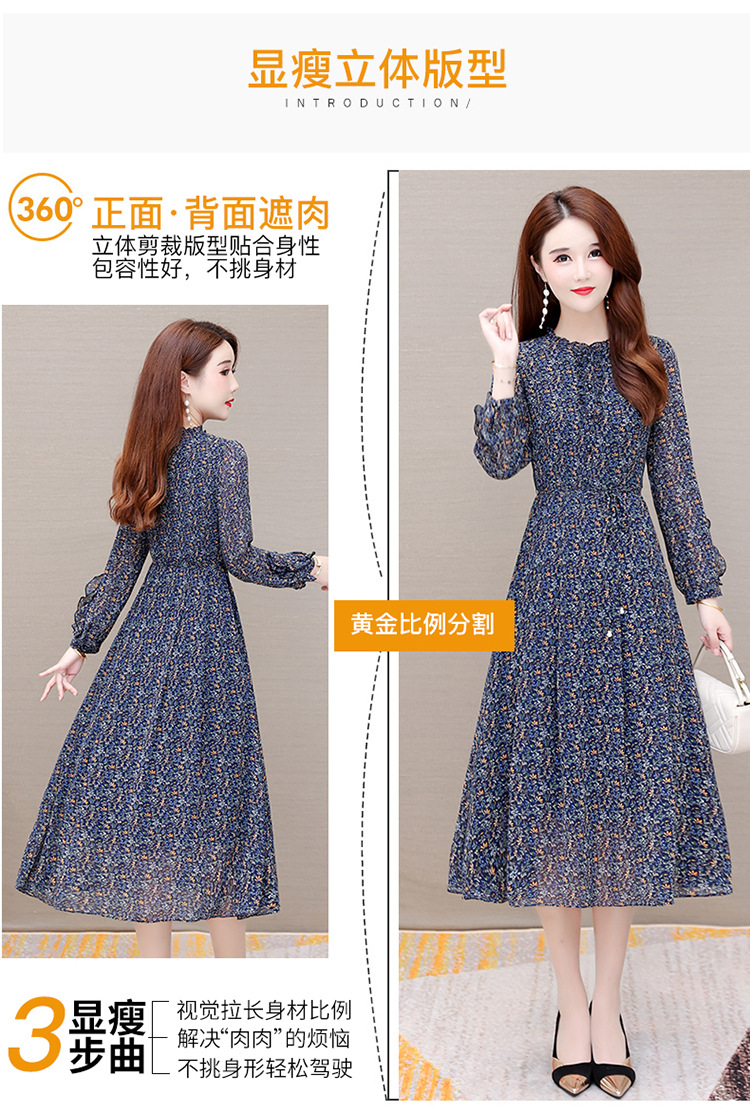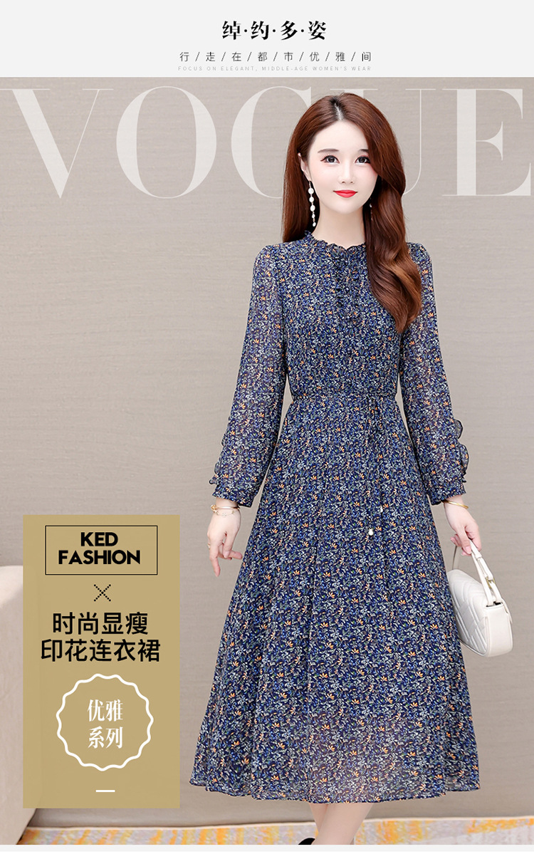 时尚气质长款高腰A字裙,蓝色碎花连衣裙QYM-KED-19808 -Y