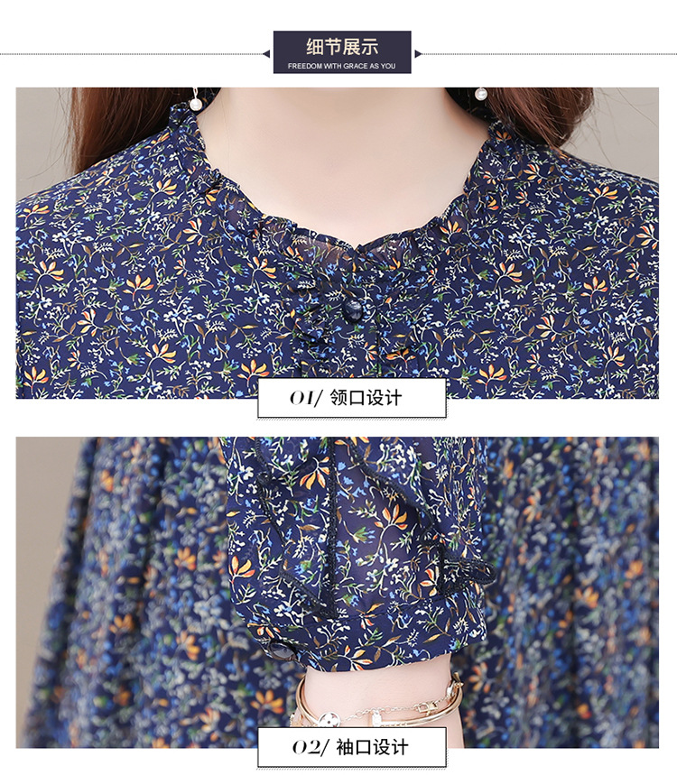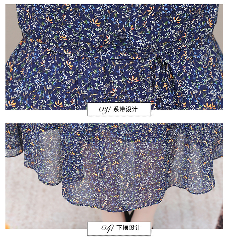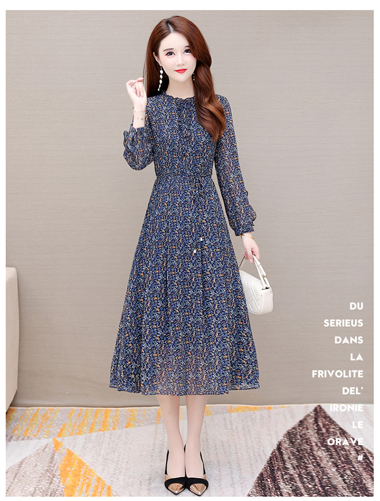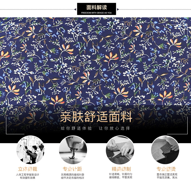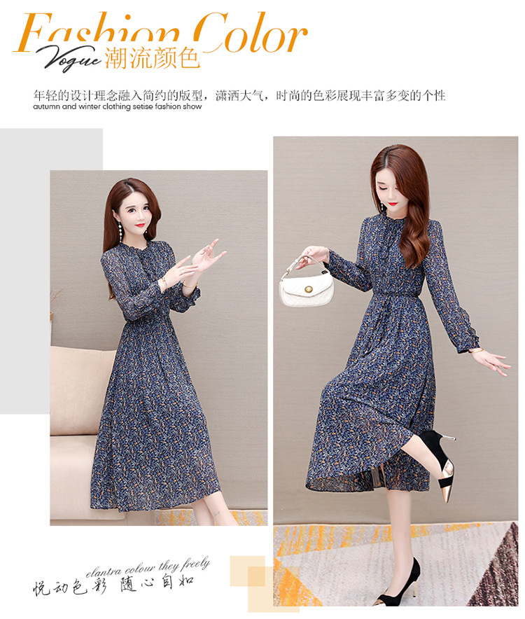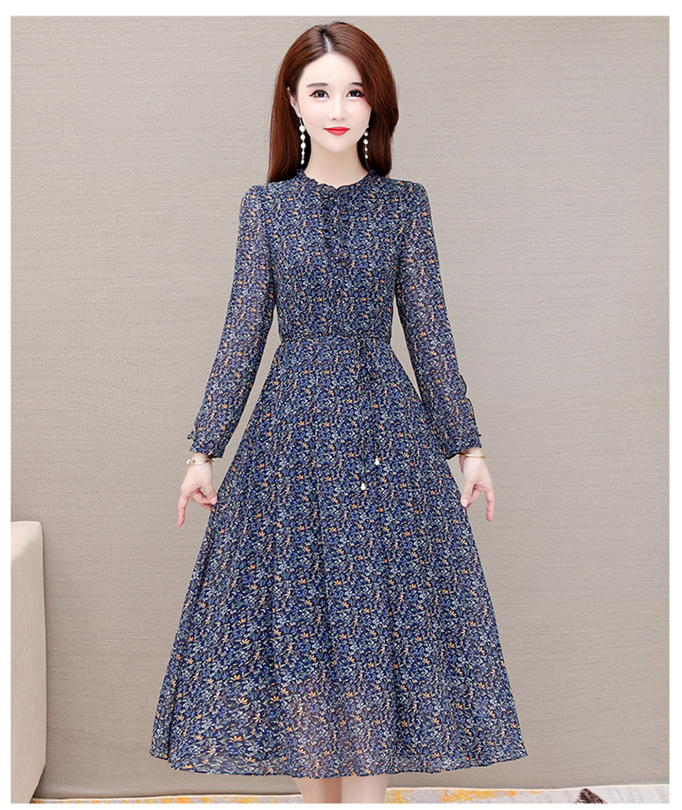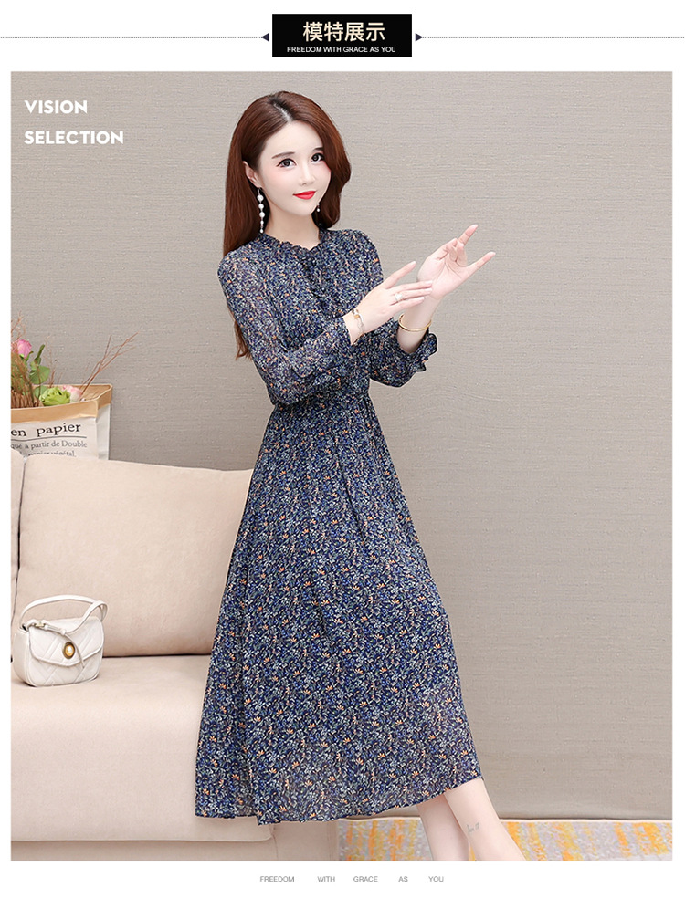 时尚气质长款高腰A字裙,蓝色碎花连衣裙QYM-KED-19808 -Y