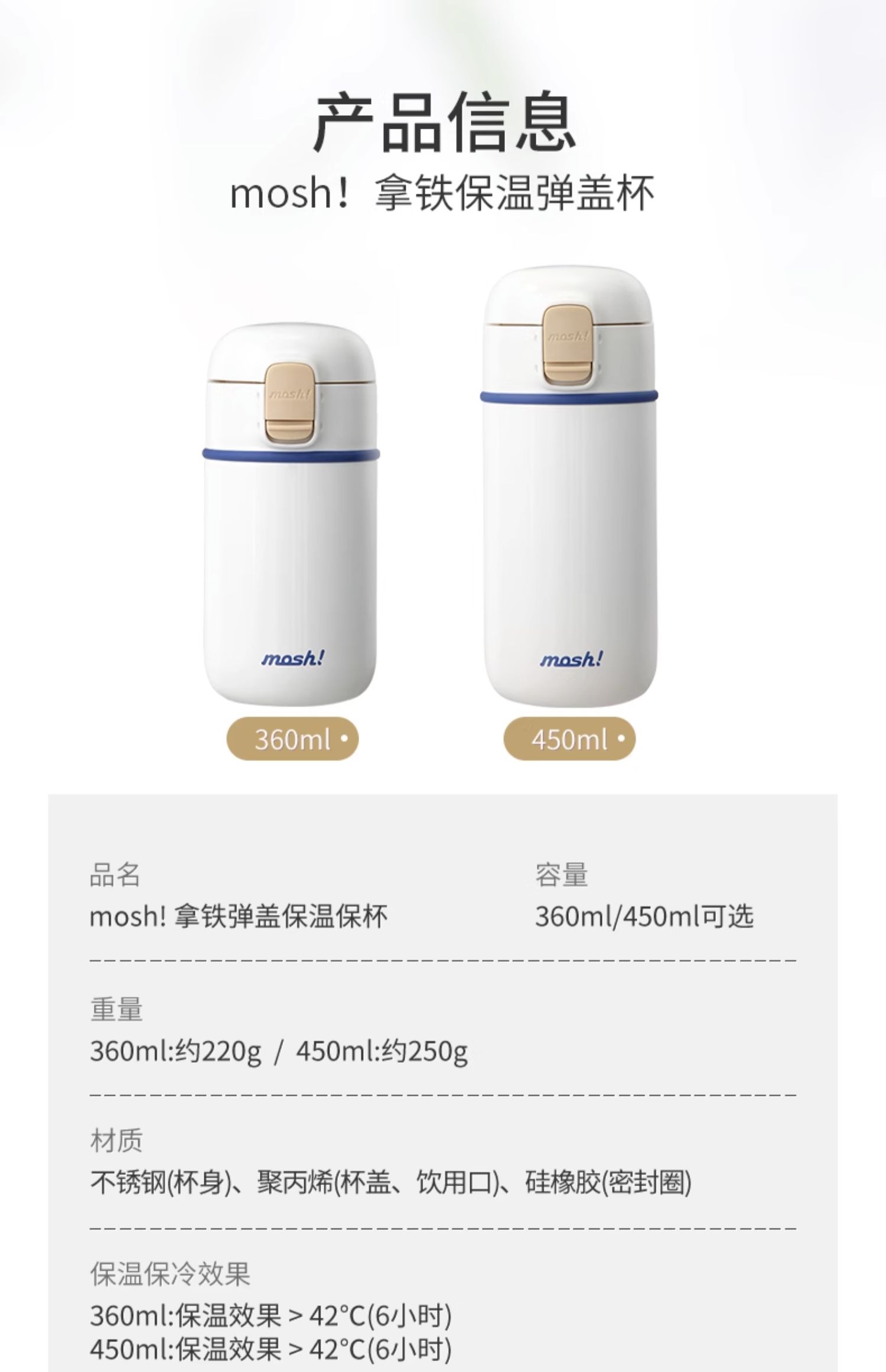 mosh!弹盖保温保冷便携水杯 360ml/450ml