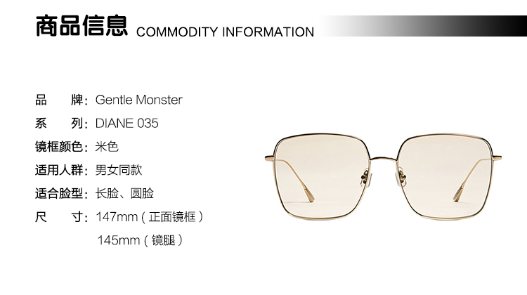 Gentle Monster/Gentle Monster 女士方形大镜框时尚墨镜太阳眼镜DIANE 035