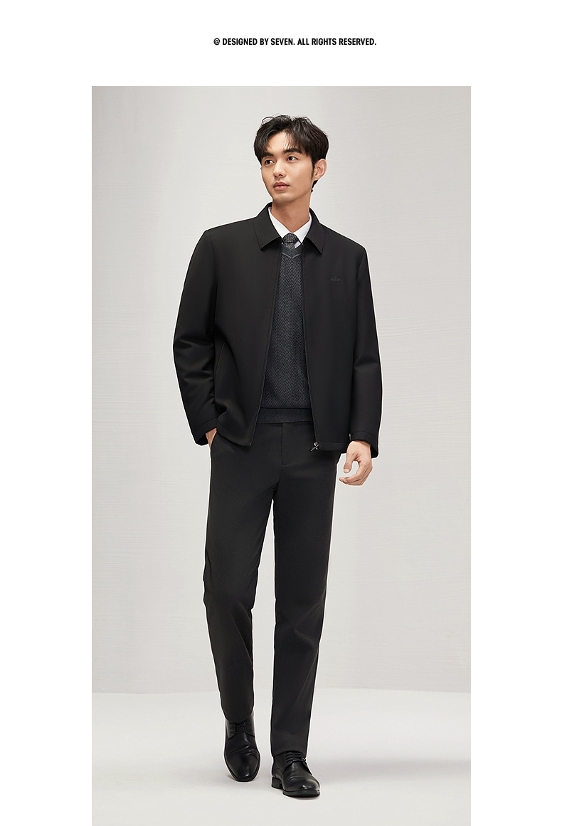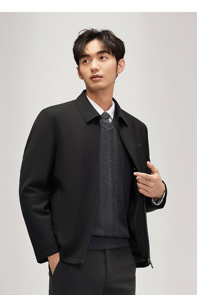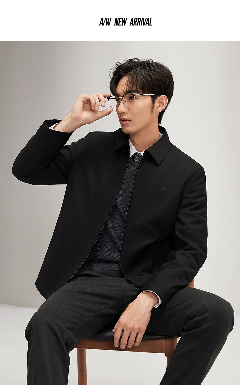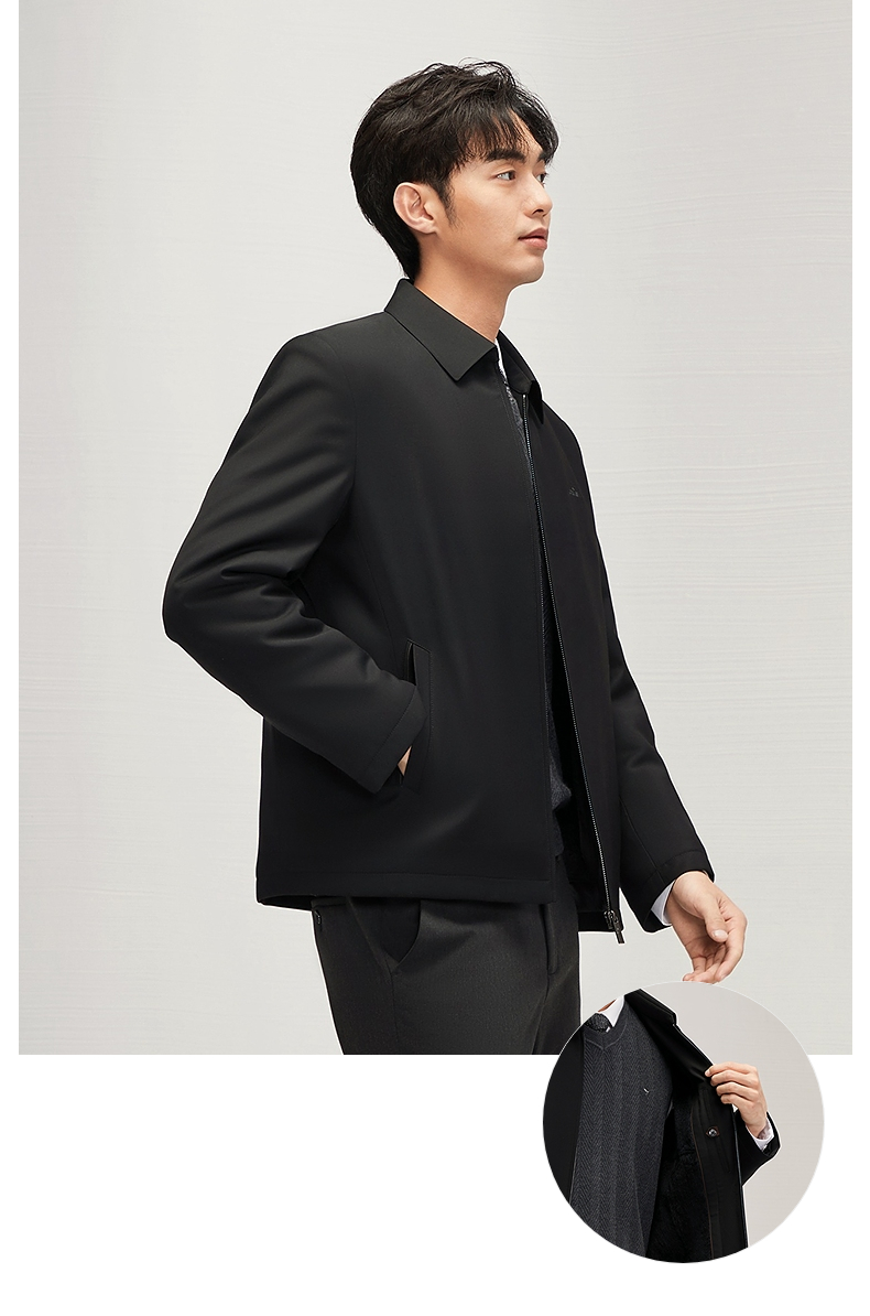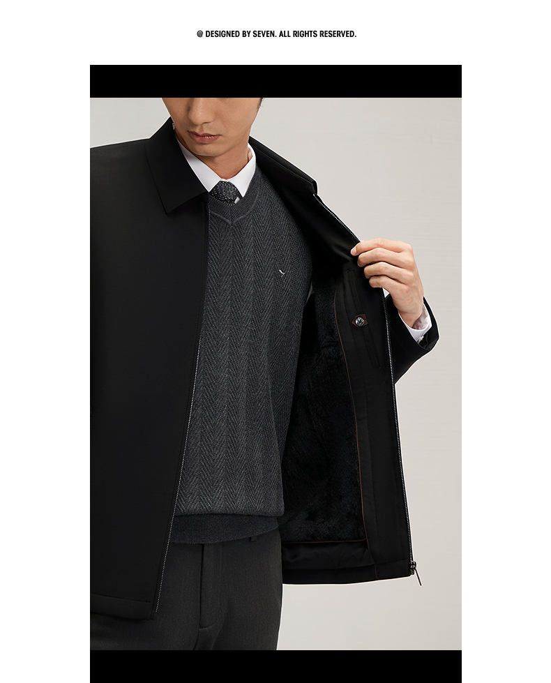 柒牌翻领尼克服2025秋冬新款可拆卸兔毛内胆商务百搭保暖外套 129J70130