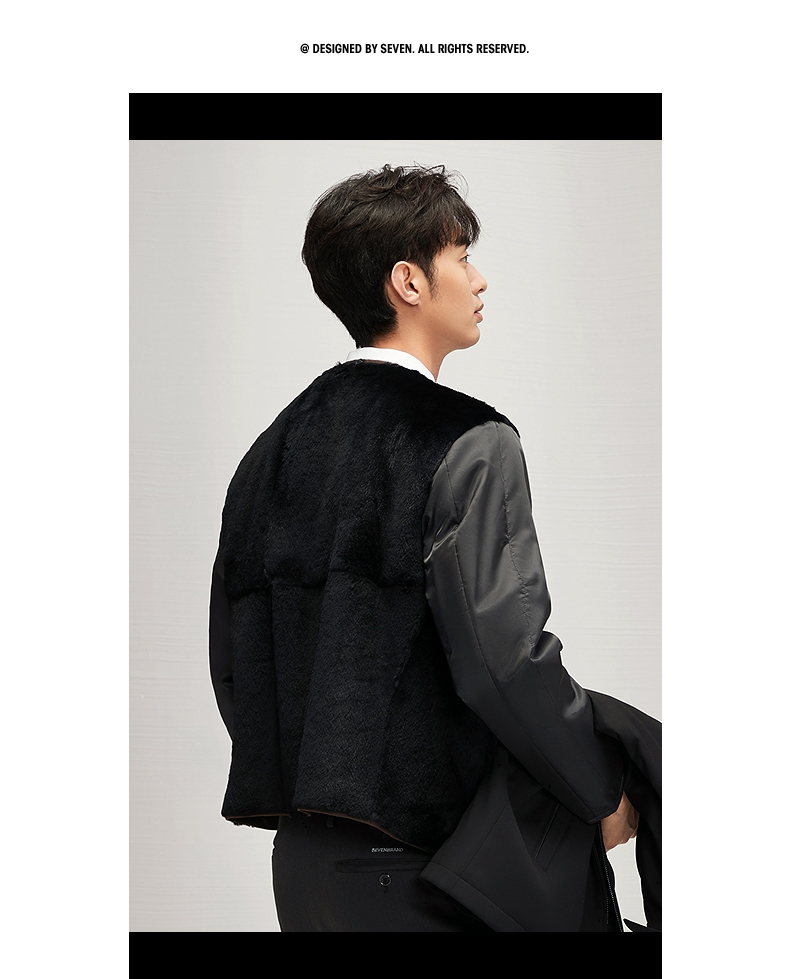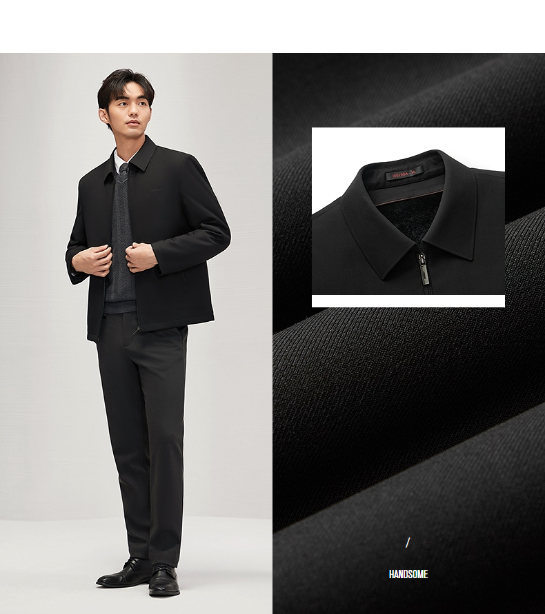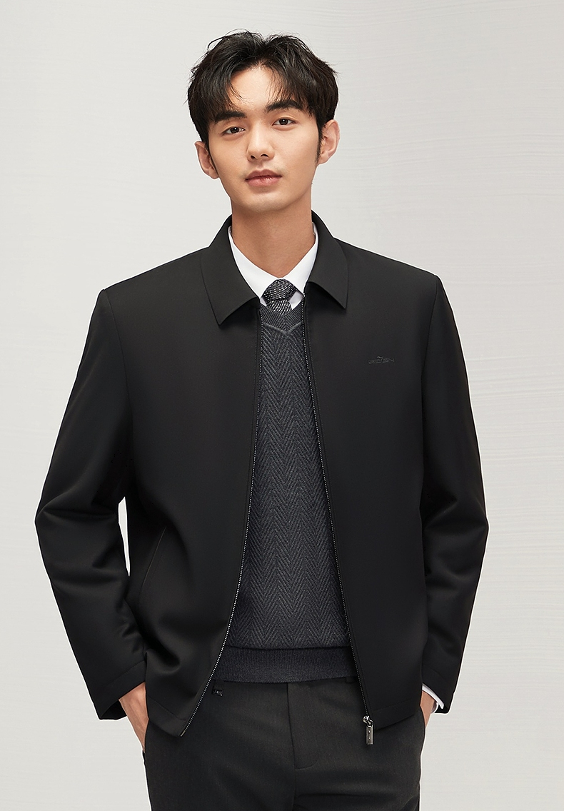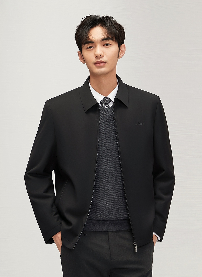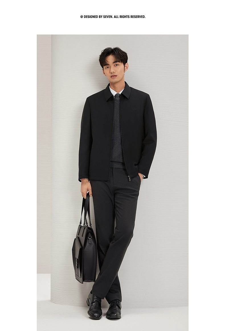 柒牌翻领尼克服2025秋冬新款可拆卸兔毛内胆商务百搭保暖外套 129J70130