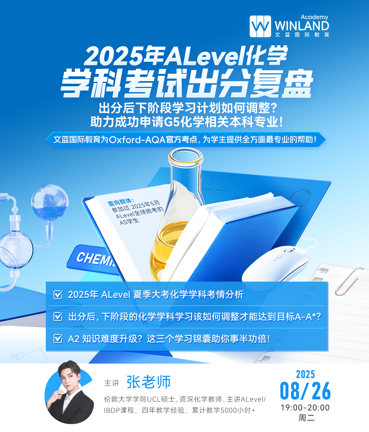 【8.26】2025年A-Level化学学科考试出分复盘,出分后下阶段学习计划如何调整?助力成功申请G5化学相关本科专业!