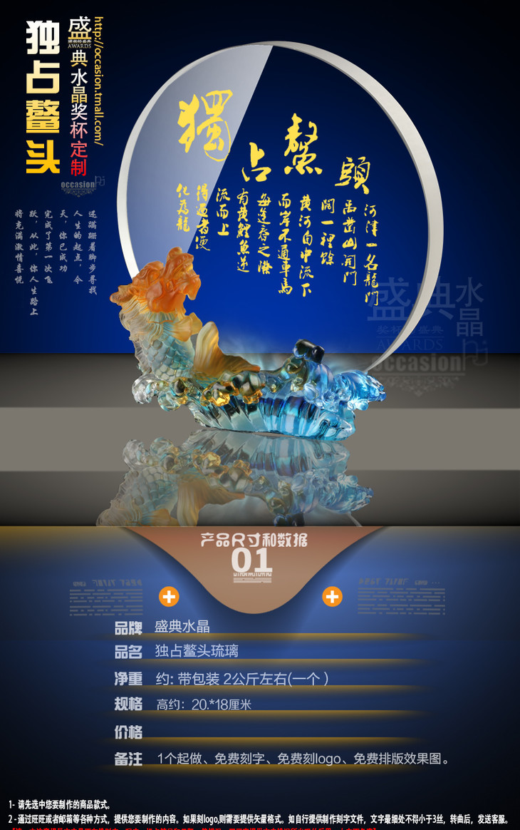 琉璃水晶奖杯定制 定做 奖杯 创意奖牌新款纪念品免费刻字
