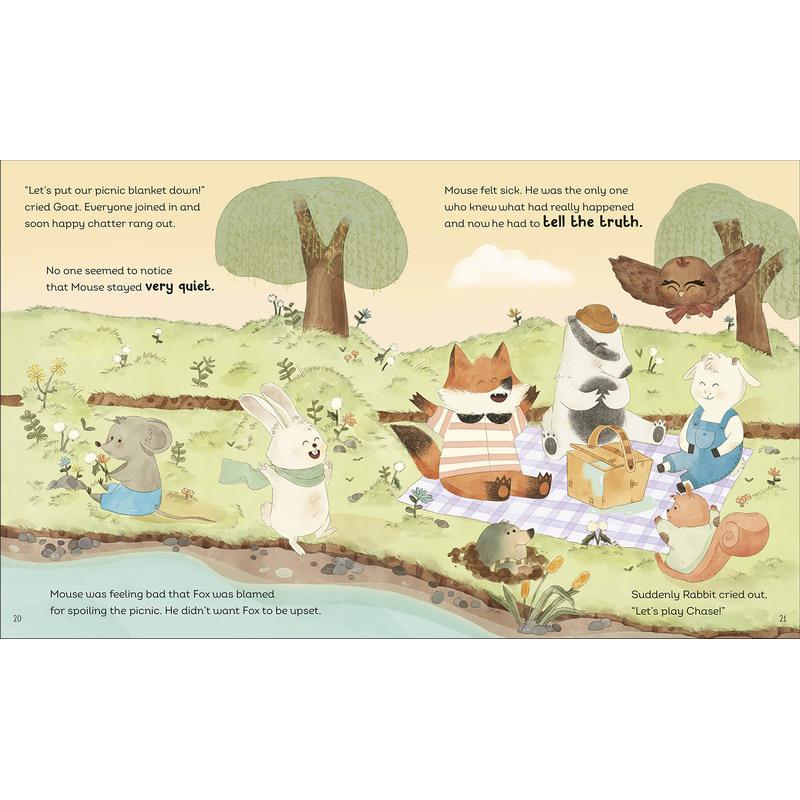 It's a perfect day on Rainbow Island for a boat trip and a picnic, but when Mouse accidentally makes a hole in his boat, he gets scared and lets his friend Fox take the blame. It doesn't take long before Mouse starts to feel awful about what he has done. Will he be a kind friend and own up to his mistake? Will Fox forgive him? Will Mouse get to be a member of the Kindness Club?