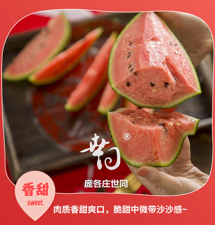 “庞各庄世同”—— 北京市农业好品牌,北京市、区西甜瓜种植技术实验站,先后推行40余种种植技术,27年专注种植西瓜,严选每一颗鲜甜西瓜。