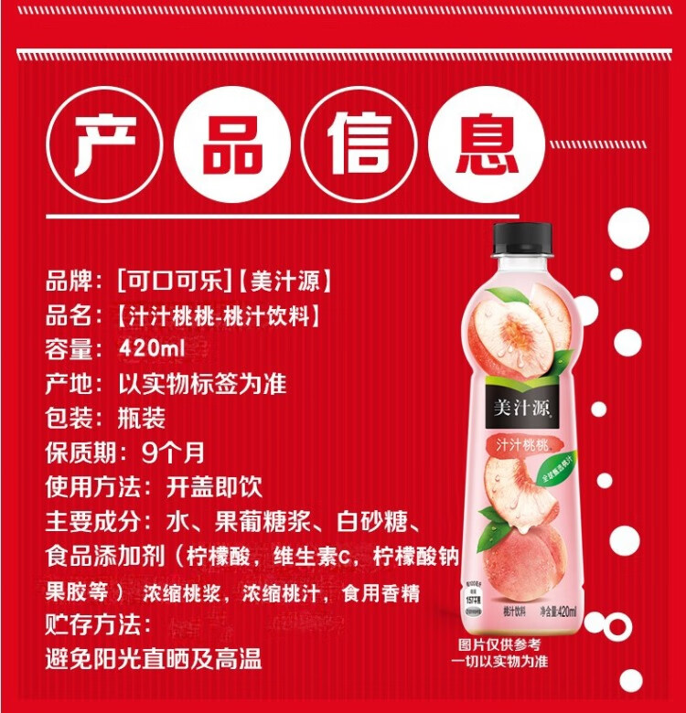 美汁源汁汁桃桃420ML/瓶