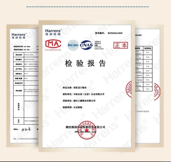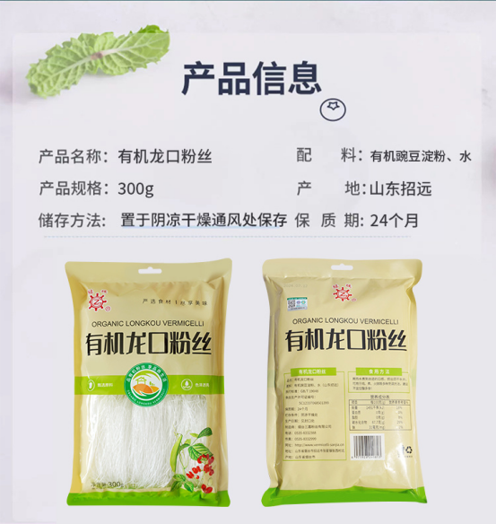 🌟【公司介绍】 这款有机粉丝产自中国粉丝王者之都--山东招远 烟台三嘉粉丝有限公司 传承百年匠心工艺 成立至今已有39年历史 年产优质龙口粉丝五万吨 全球最大的龙口粉丝生产加工厂