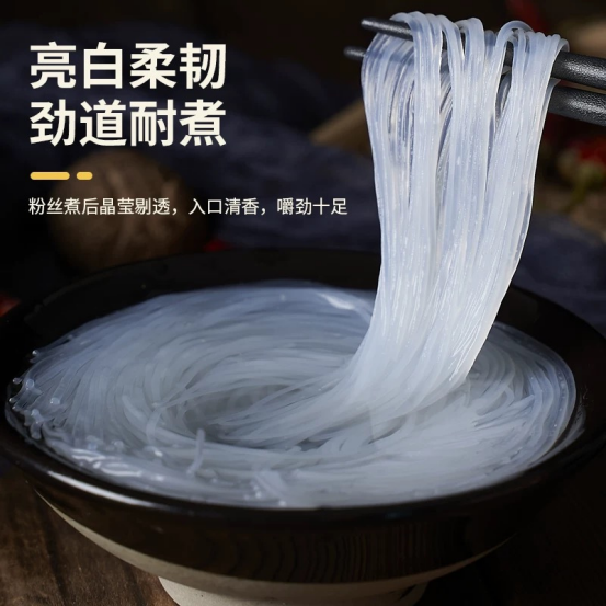 🌟每一口有机都是严选出品 ⭐高亮洁白,无杂质 条纹清晰,无并丝 🐉粉丝入水,劲道柔韧, 根根分明,久煮不糊~ 产品质量看的见!