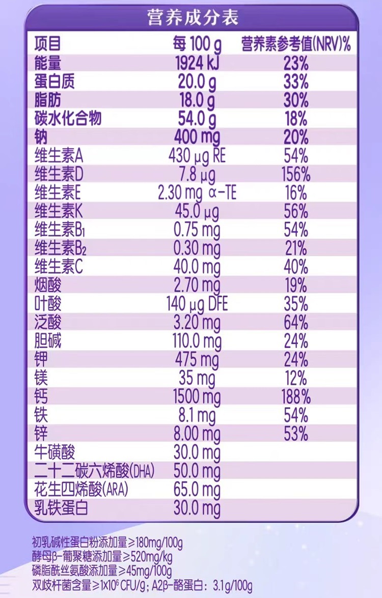 2.维生素D+维生素K+高钙是促进骨骼成长的好配方;还添加了CBP初乳碱性蛋白;