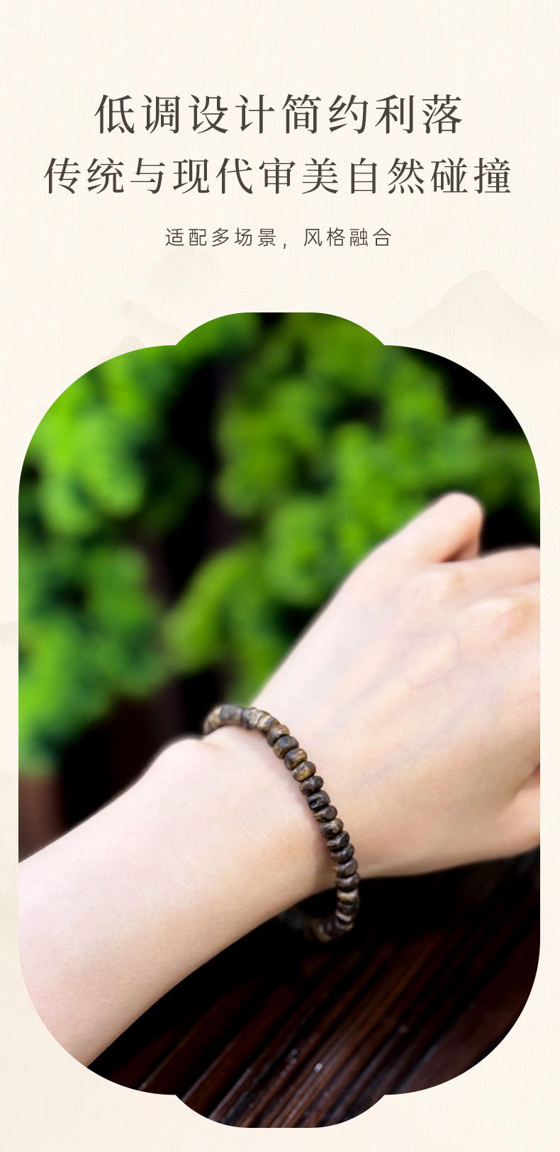 5、无需盘玩:沉香贵为众香之首与紫檀、花梨等木串不同。沉香手串不建议刻意盘玩,盘玩会形成包浆(一层氧化膜)堵住毛孔,使其香味无法散发。正常佩戴即可,人体油脂的滋润就是好的保养。
